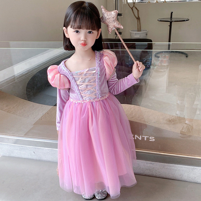 📚 睡美人爱洛公主裙彩虹护卫队COS连衣裙女童长袖丝绒网纱乐佩裙