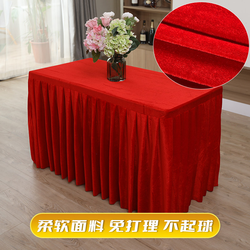 📚 酒店会议台布桌套罩长方形红色婚庆长条桌围会议室桌裙金丝绒桌布