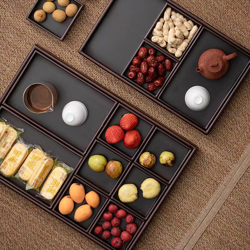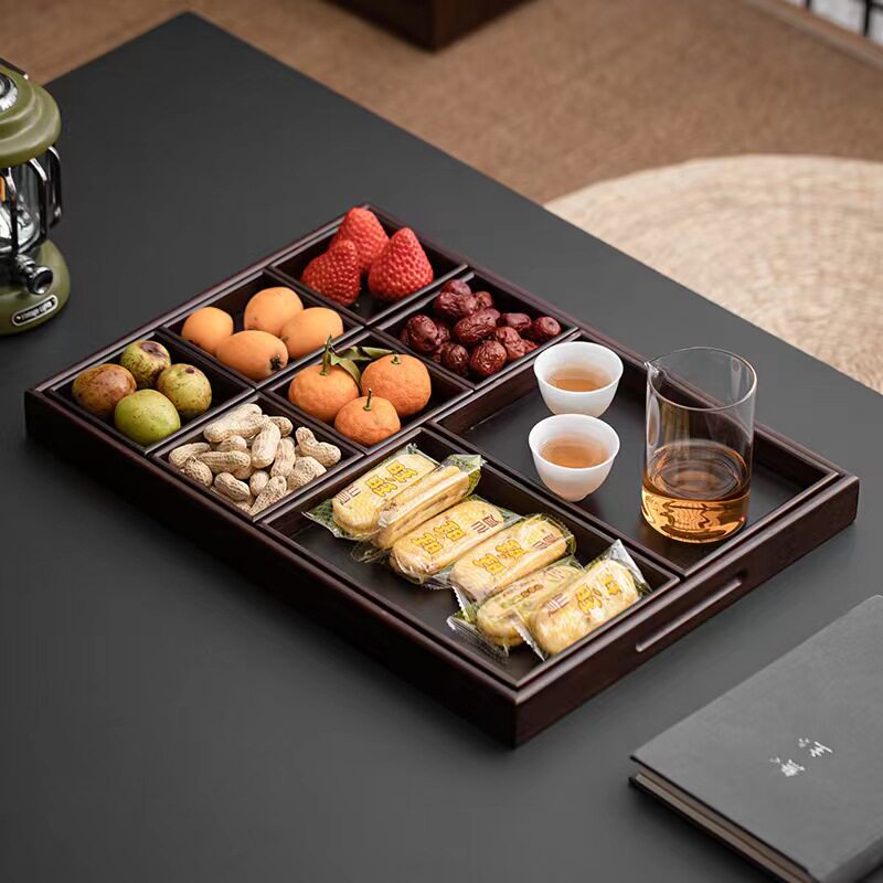 📚 围炉煮茶九宫格托盘干果收纳盒点心零食多格盘中式家用茶具茶盘
