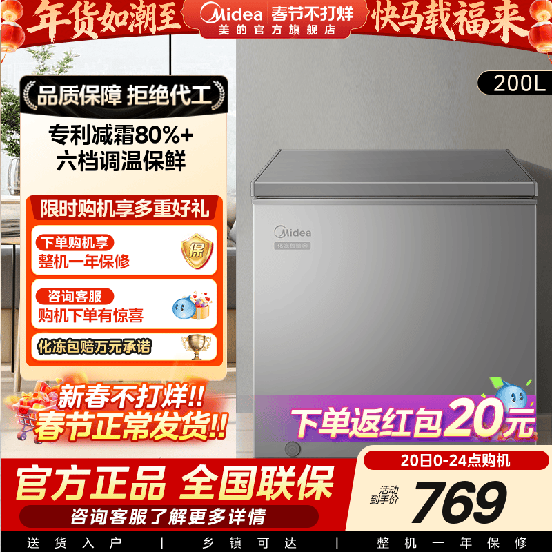 📚 美的200升小冰柜家用小型冷柜全冷冻冷藏商用大容量单温减霜冰箱