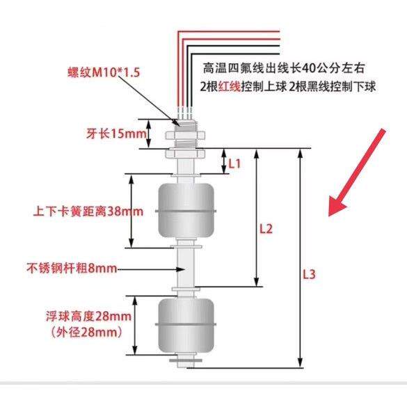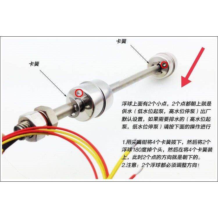 📚 不锈钢双浮球液位开 关干簧管浮球水位控制器可调式高低液位感测