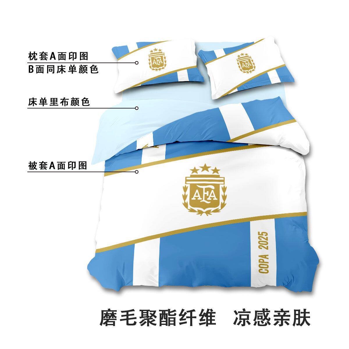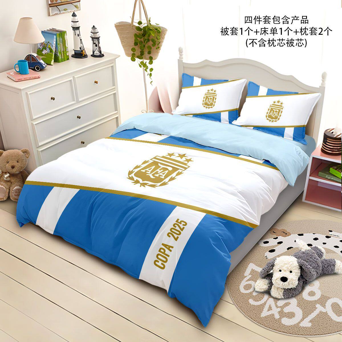 📚 世俱杯球队磨毛四件套足球爱好者印花个性被套运动风男生宿舍套件