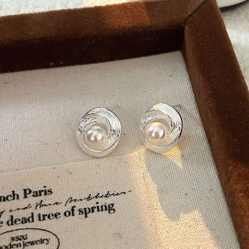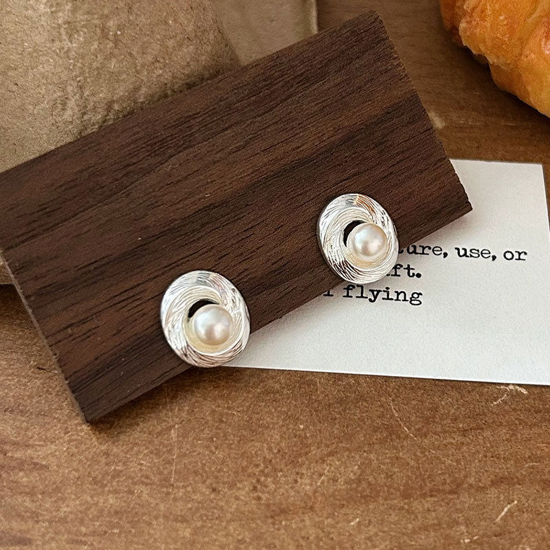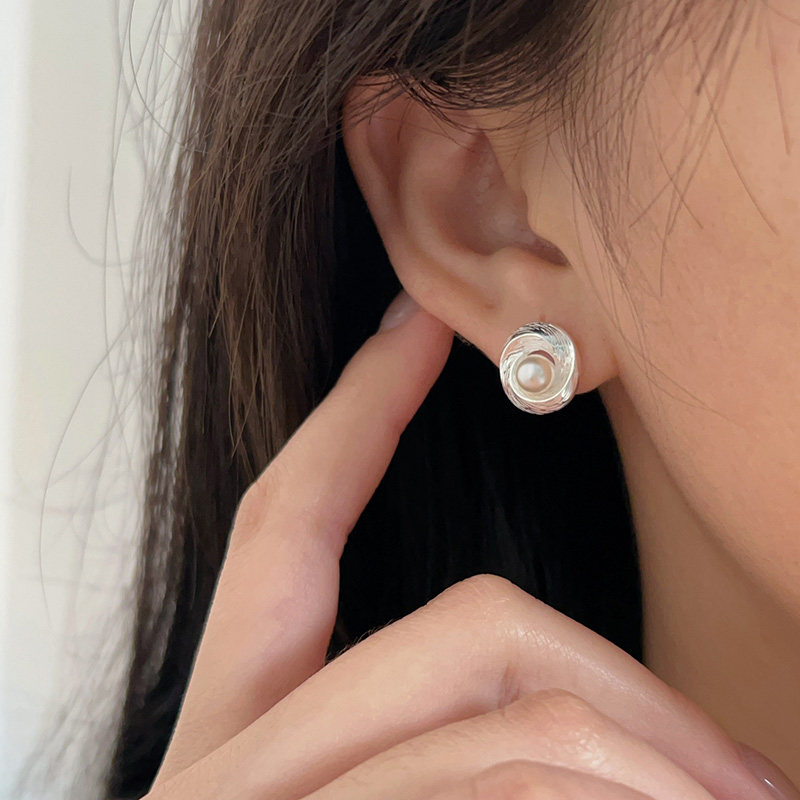 📚 S925银欧美雅比气质小众几何螺纹珍珠耳钉冷淡风高级感耳饰时尚
