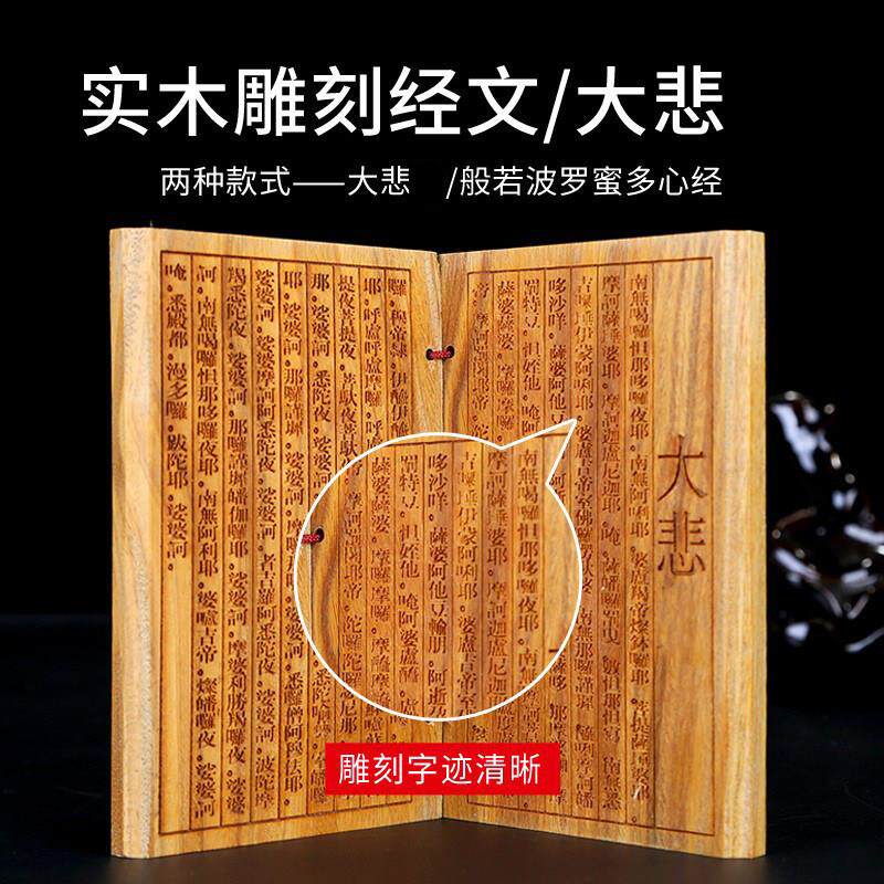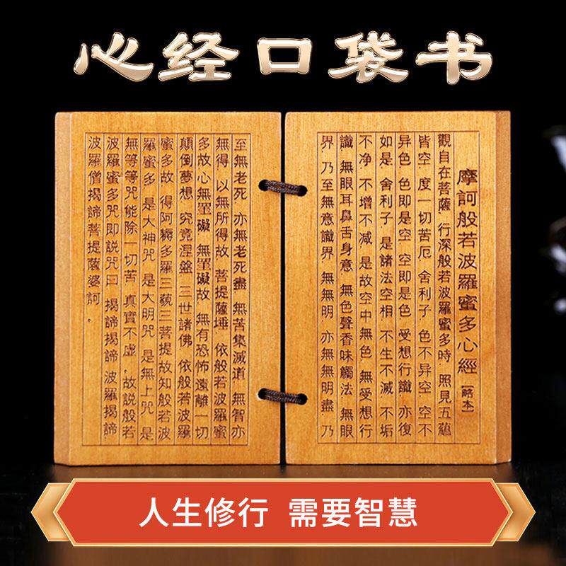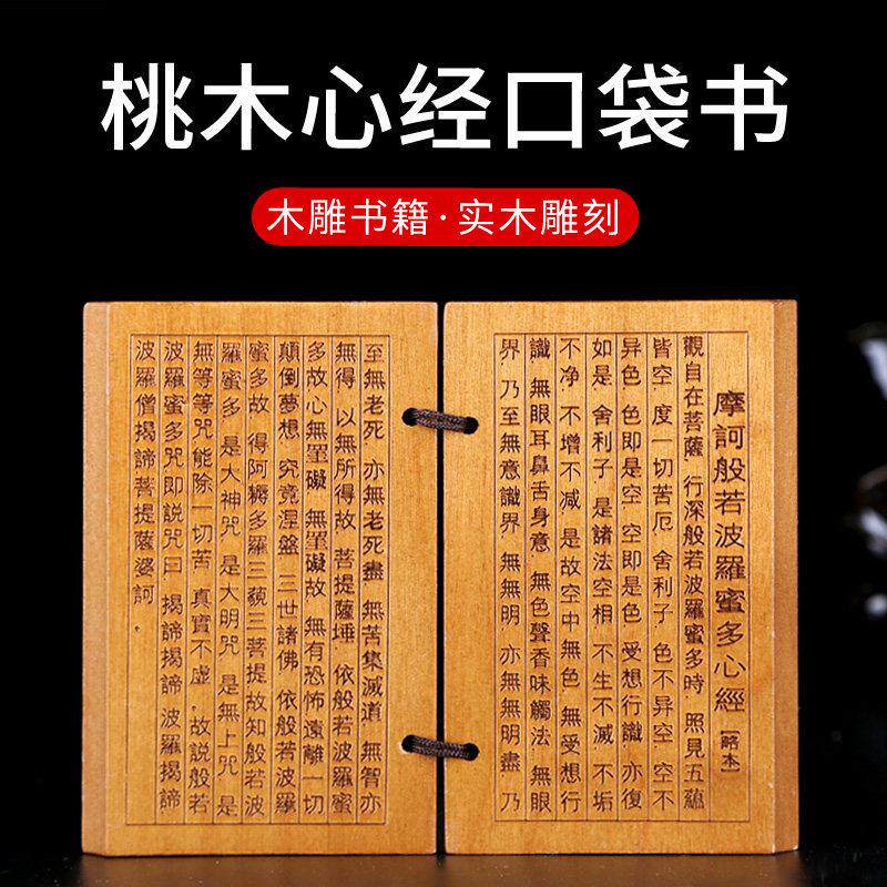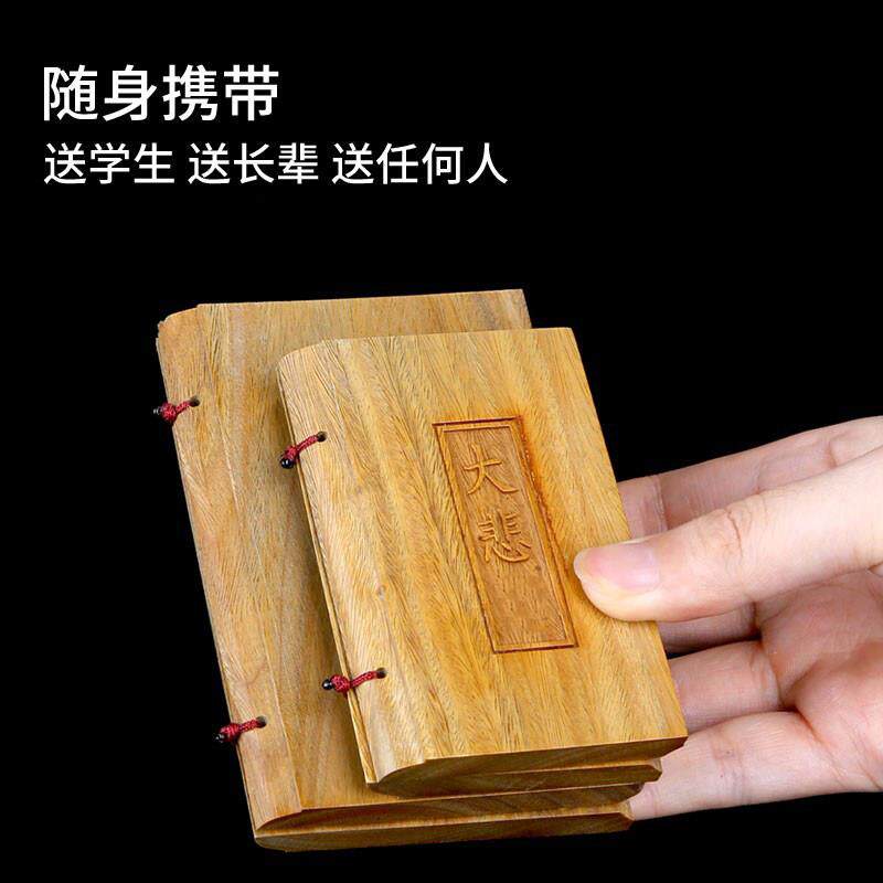 📚 木雕桃木经文书大悲宙心经绿檀木刻经书口袋书佛经选段摆件随身带
