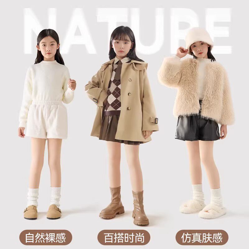 📚 儿童连裤袜秋冬加绒加厚女童打底裤白色舞蹈袜薄绒肤色不掉裆黑色