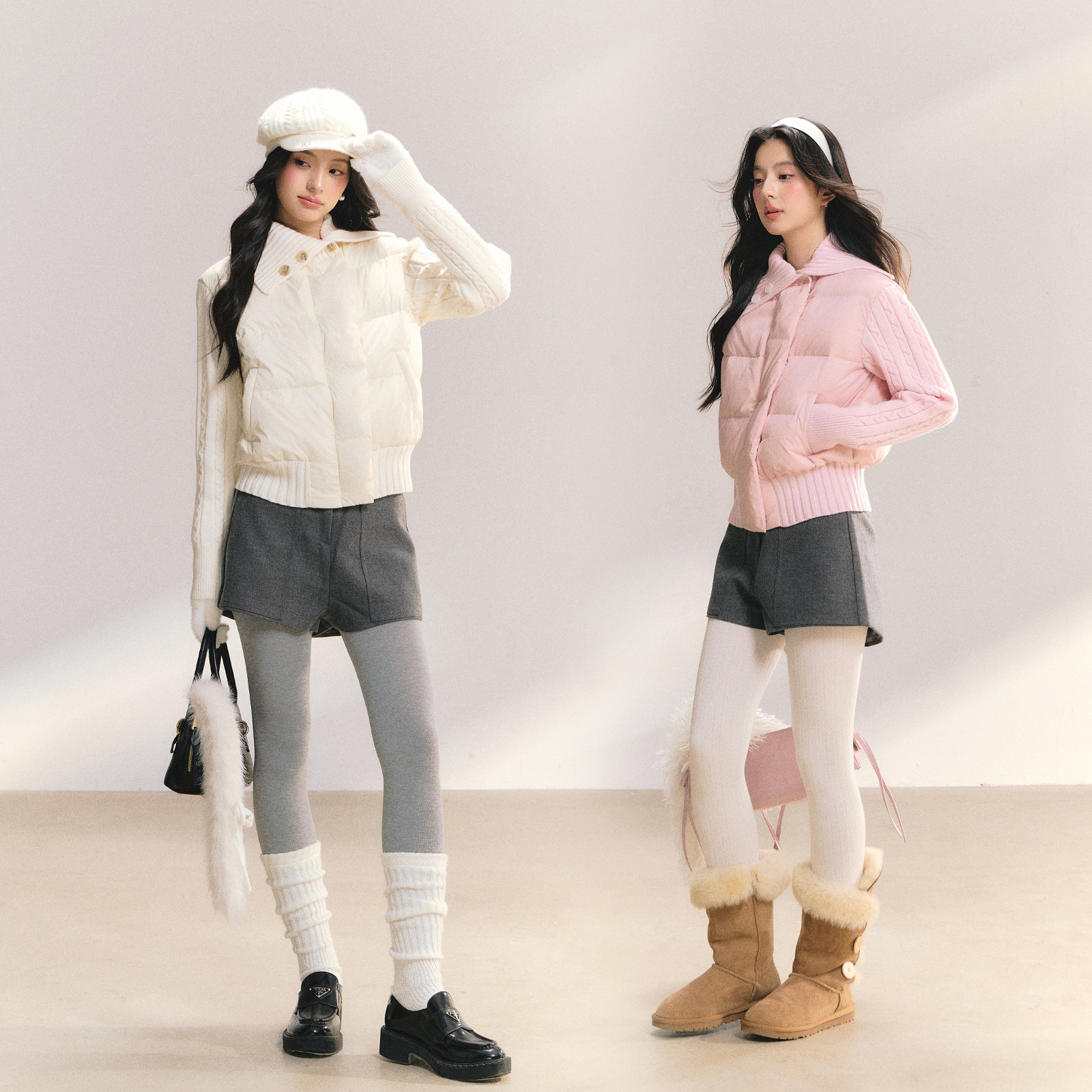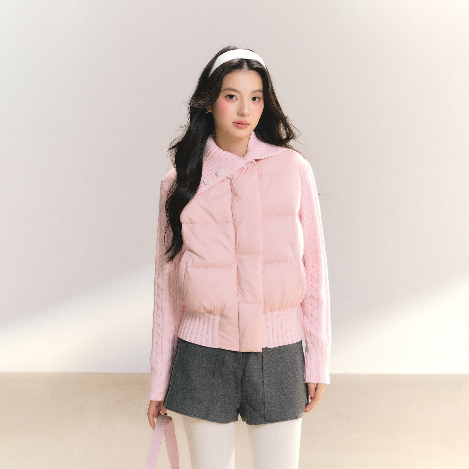📚 FPMZ【心动信号】修身麻花袖翻领排扣90白鸭绒羽绒服棉服外套冬女