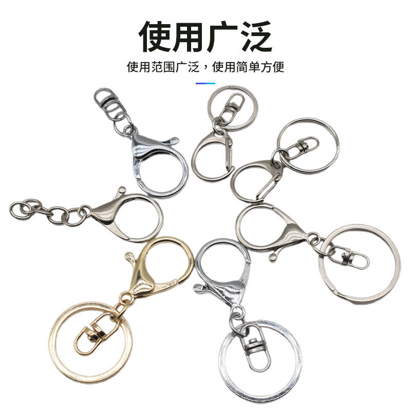 📚 DIY挂件饰品配件三件套合金金属钥匙扣材料八字龙虾扣镀银钥匙圈