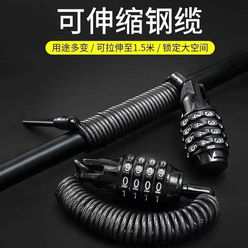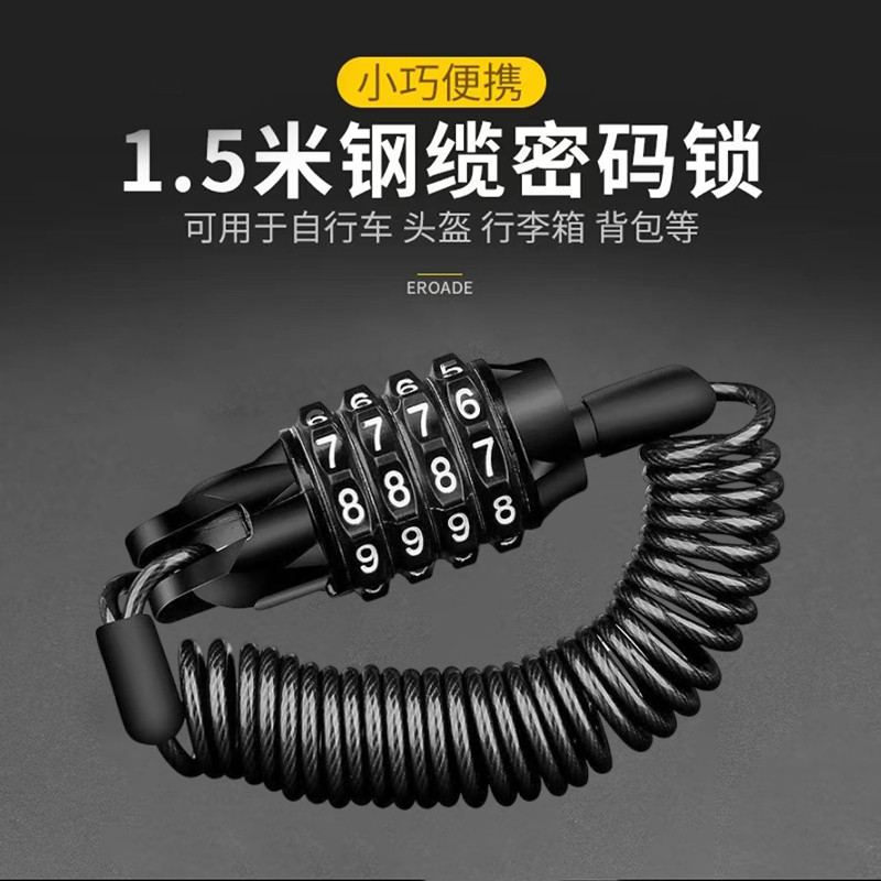📚 摩托电动自行车细头密码锁电动滑板车四位数便携钢丝锁钢缆头盔锁