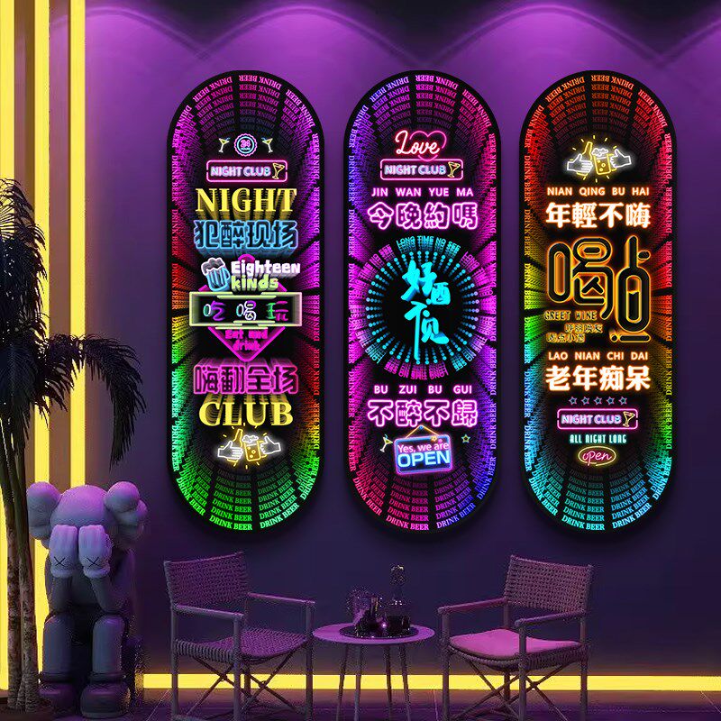📚 酒吧墙面装饰画幻彩动态发光文字氛围灯画清吧酒馆KTV烧烤店挂画
