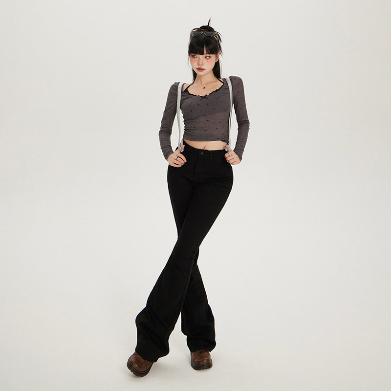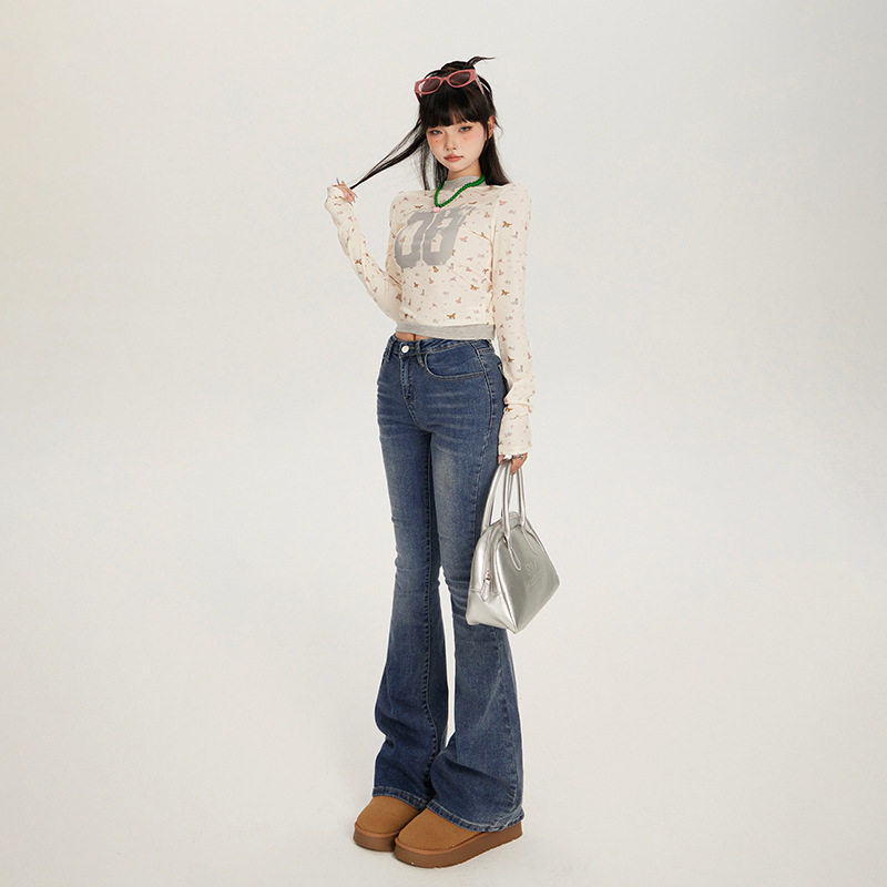 📚 复古高腰喇叭牛仔裤女修身显瘦九分长裤