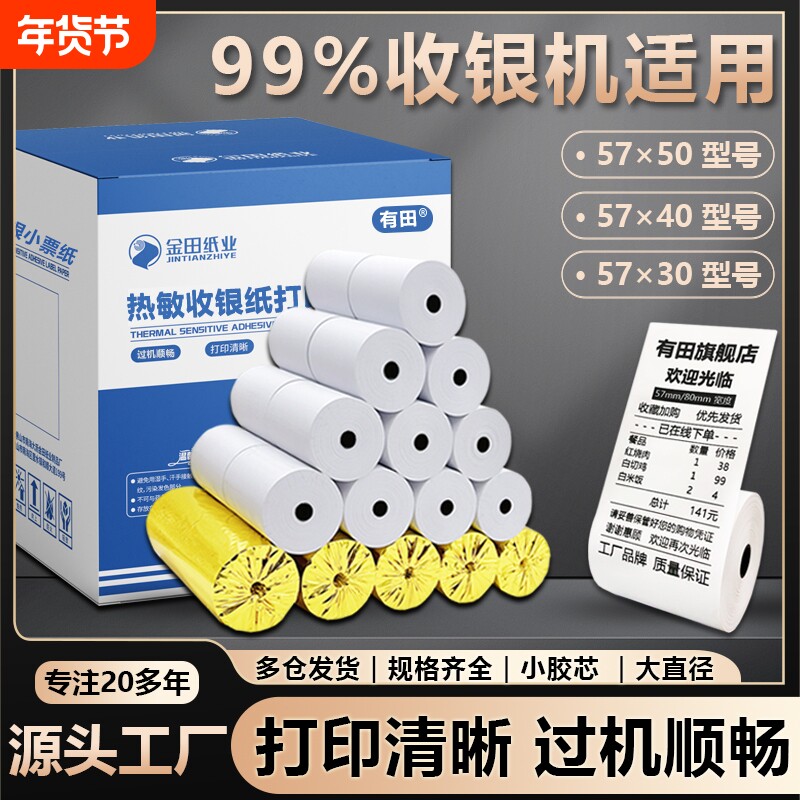 📚 热敏打印纸57x50热敏纸80x80收银纸饿了么美团外卖超市57x40x30整箱58mm打印机80x60x50卷餐厅后厨房小票错题
