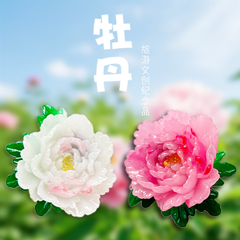 📚 洛阳菏泽牡丹花文创旅游纪念品立体冰箱贴城市创意磁吸贴伴手礼物