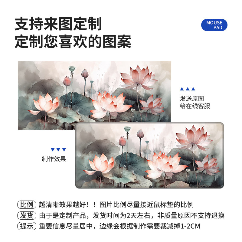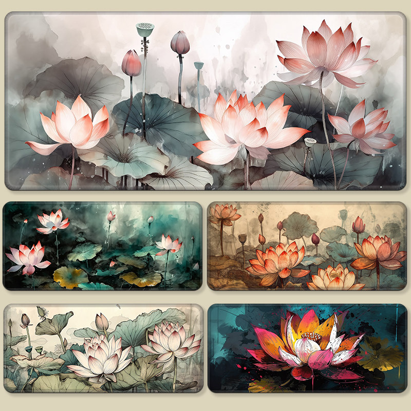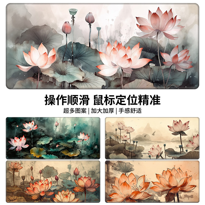 📚 水墨荷花鼠标垫子超大号古风办公室工位桌面垫加厚记本电脑键盘垫