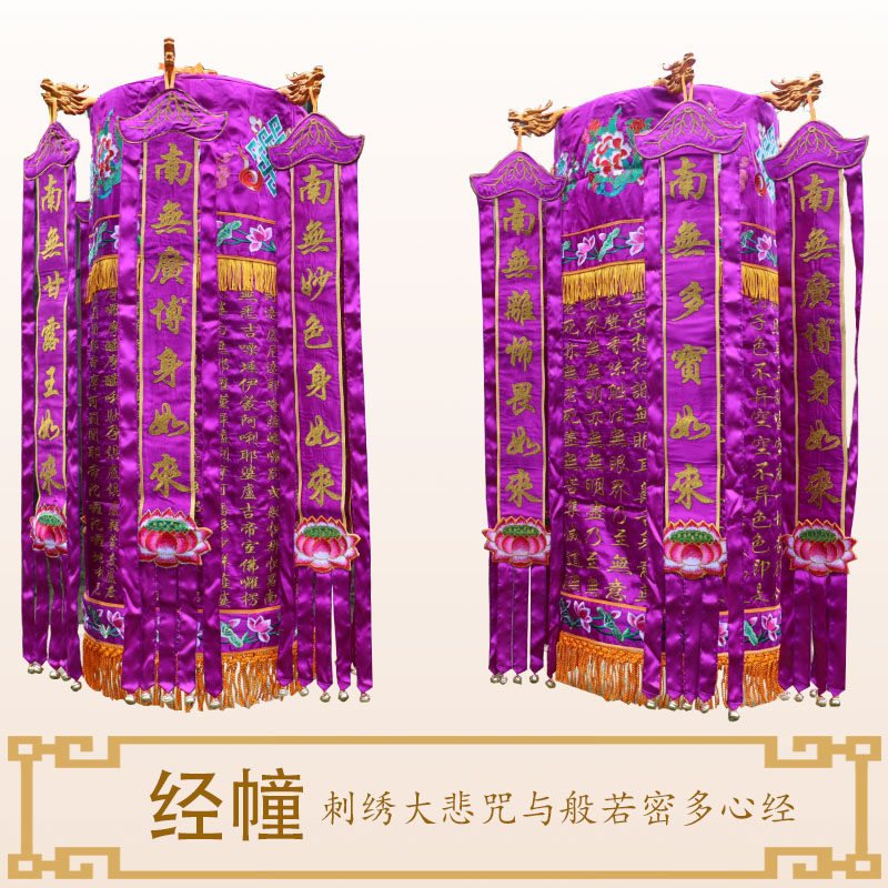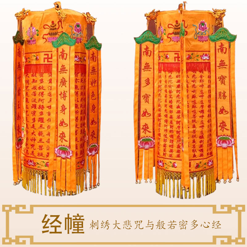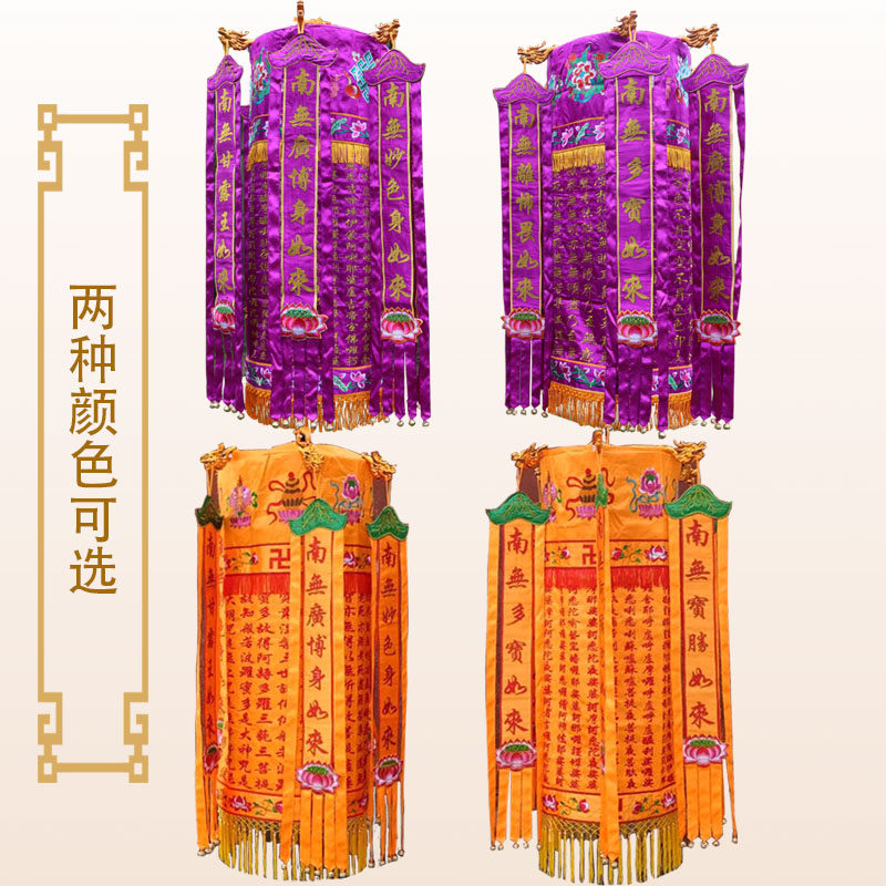 📚 七佛经幢经幡七宝如来宝盖圆幢黄伞佛家刺绣中国风工艺品戏剧表演