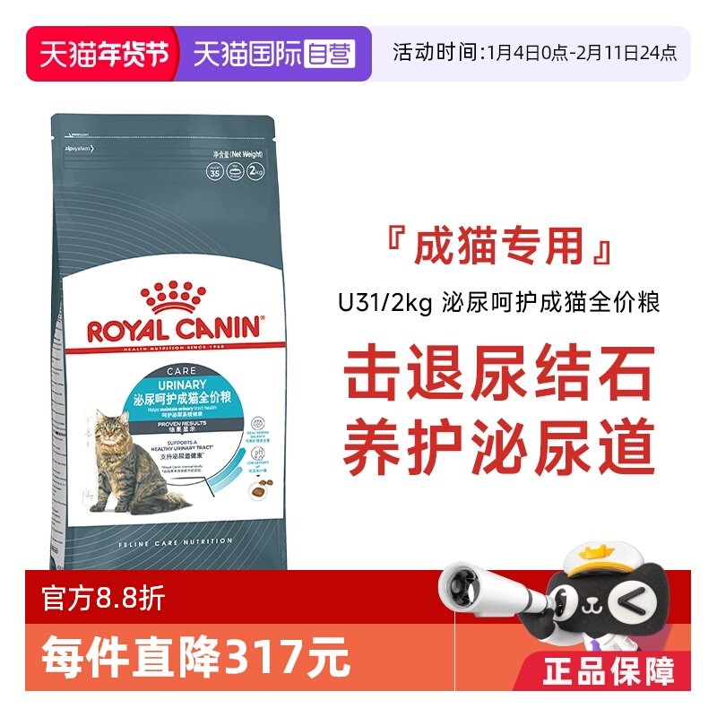 📚 【自营】皇家猫粮泌尿呵护成猫全价粮营养护泌尿通用主粮U31/2KG