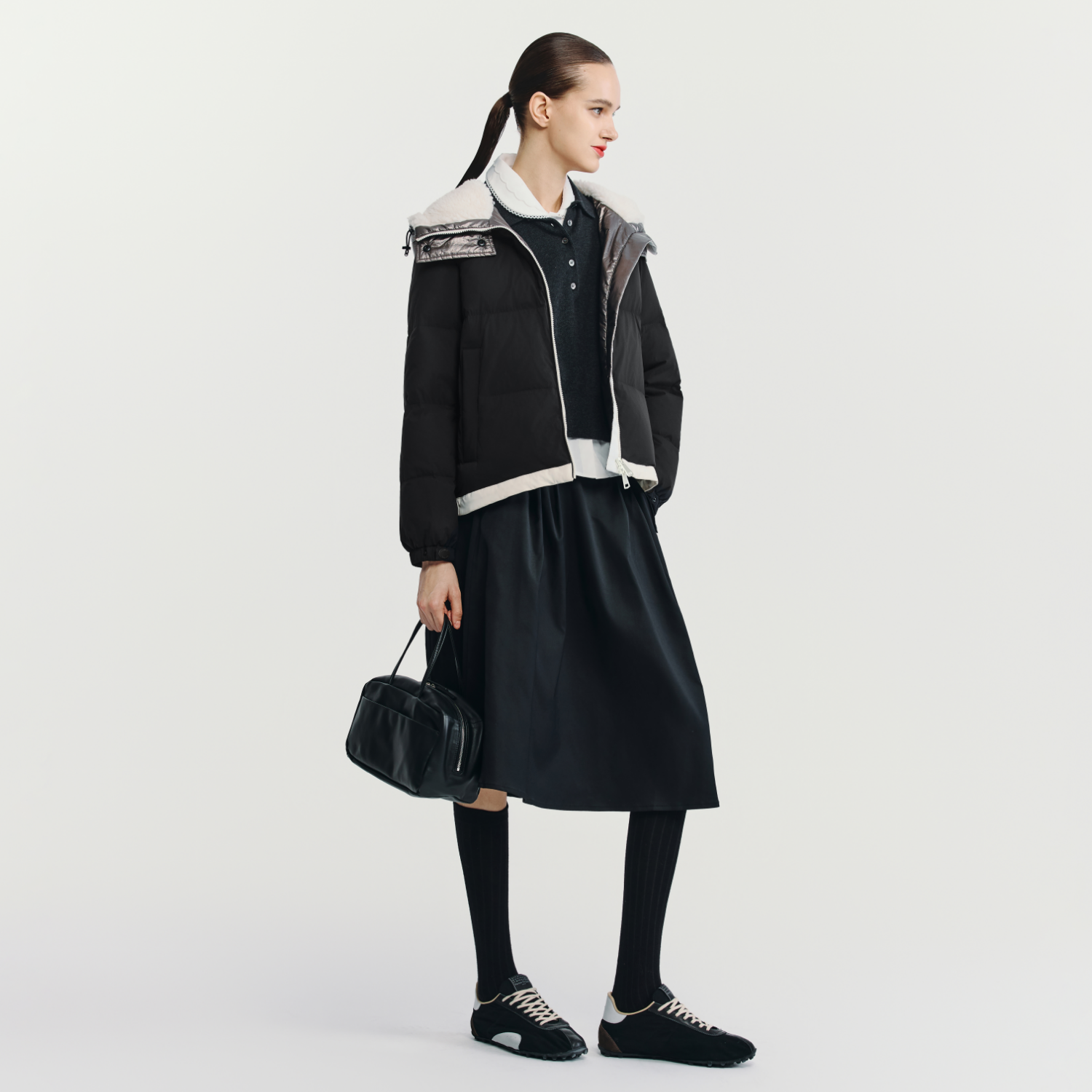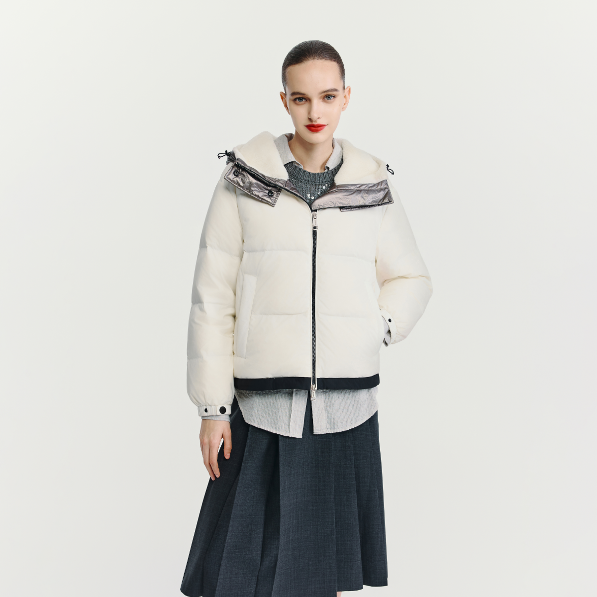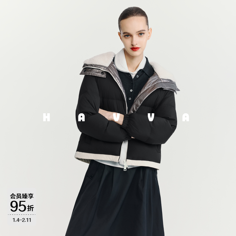 📚 HAVVA设计感拼接短款羽绒服撞色蓬松宽松女士外套2025年冬季Y2808