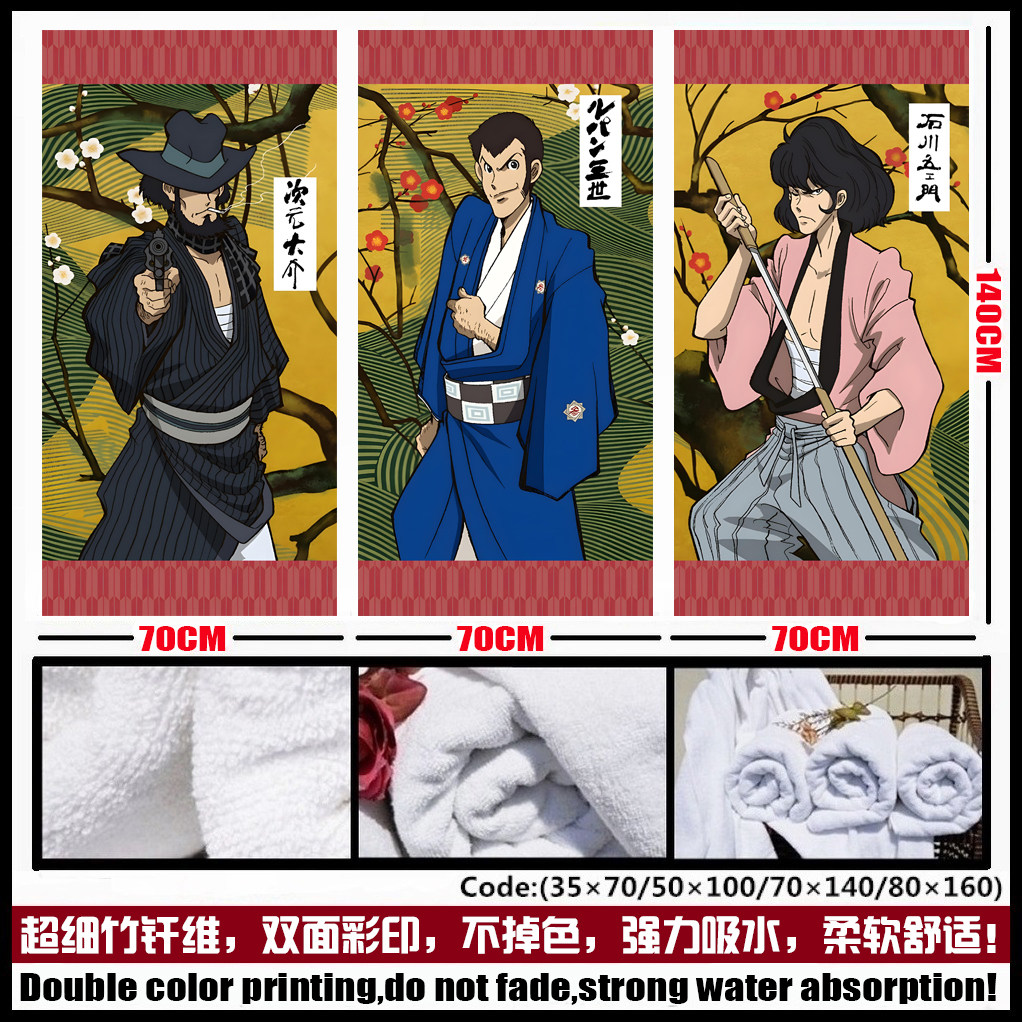 📚 鲁邦三世 次元大介 右卫门 峰不二子 钱形幸一 毛巾浴巾谷子周边