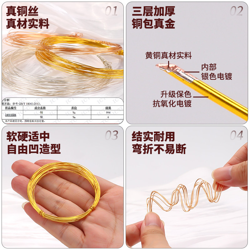 📚 大卷100米保色铜丝diy手工编织专用工艺品水晶原石绕线材料铜丝线