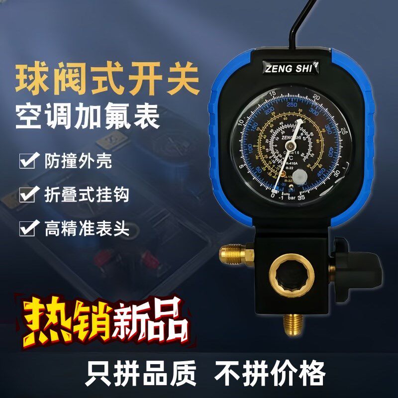 📚 空调加氟压力表球阀式 R22R410aR32冷媒加氟表雪种单表阀加液油表