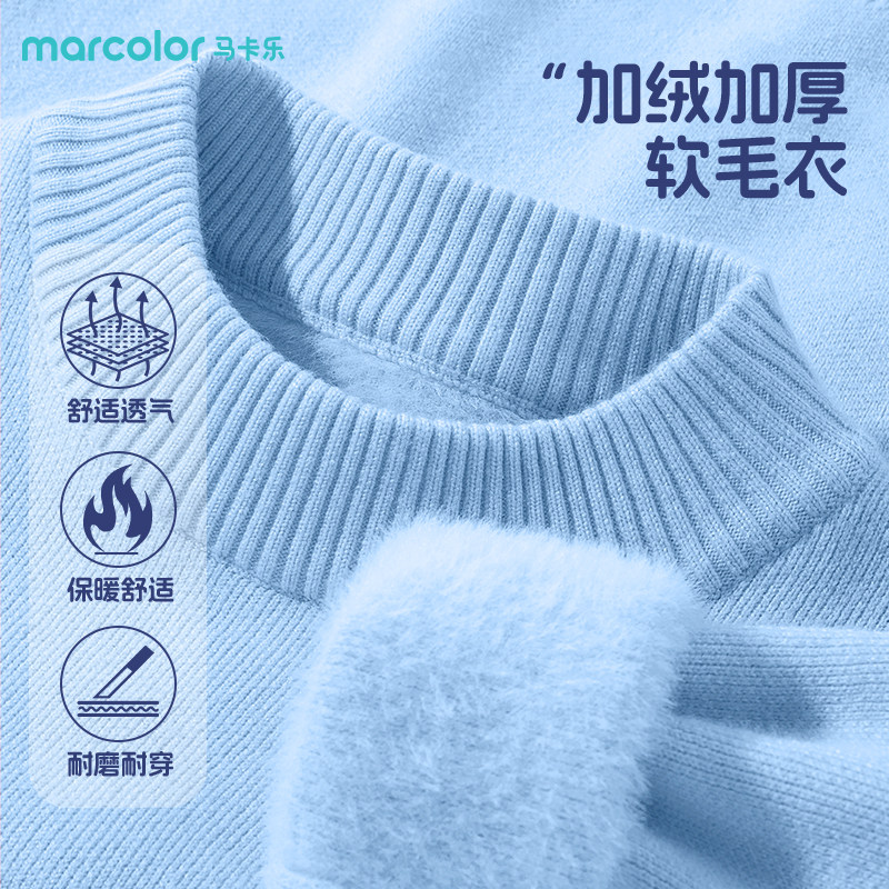 📚 马卡乐童装儿童红色厚毛衣秋冬款2026新款学生冬装时髦加绒上衣暖