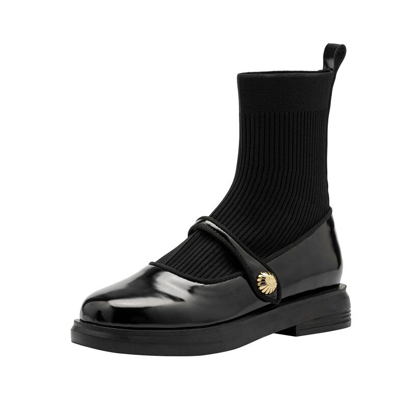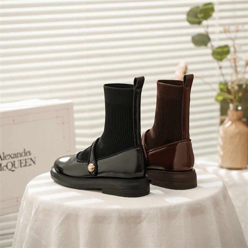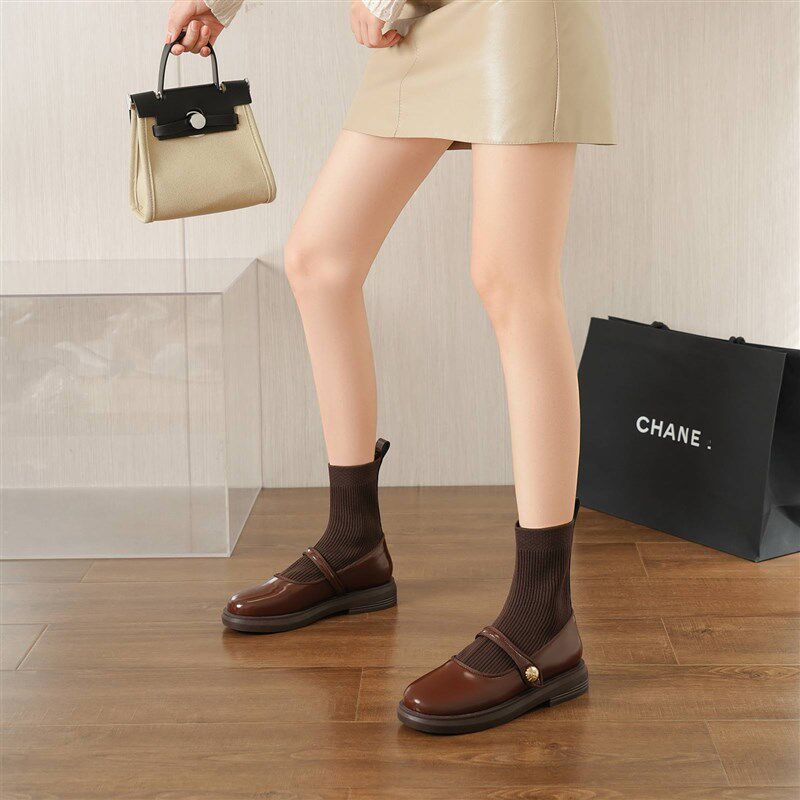 📚 速发20秋年针织瘦瘦靴丁底弹力靴春2短靴马平靴玛丽珍连袜靴