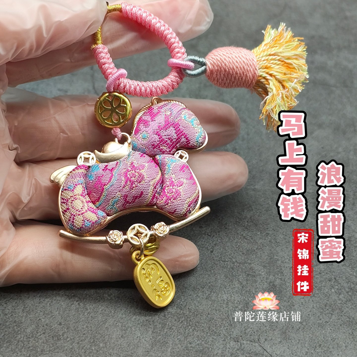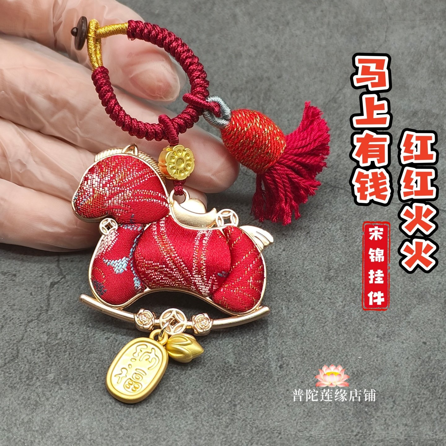 📚 普陀山马上有钱宋锦挂件摇摇马包挂钥匙扣手工编织吊坠招米配饰