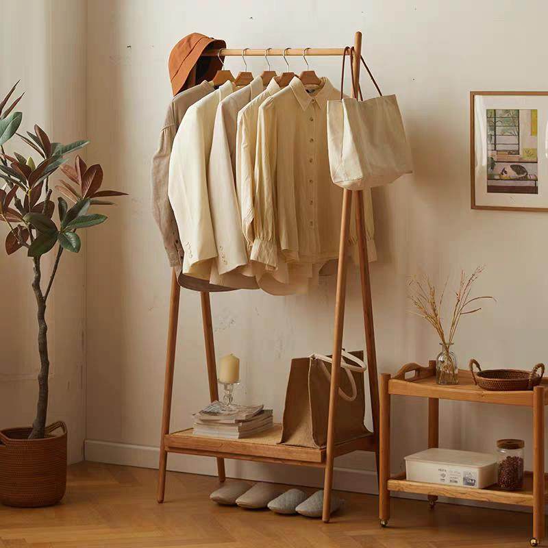 📚 北美樱桃木黑胡桃实木衣帽架落地卧室家用挂衣架北韩衣帽架置物架