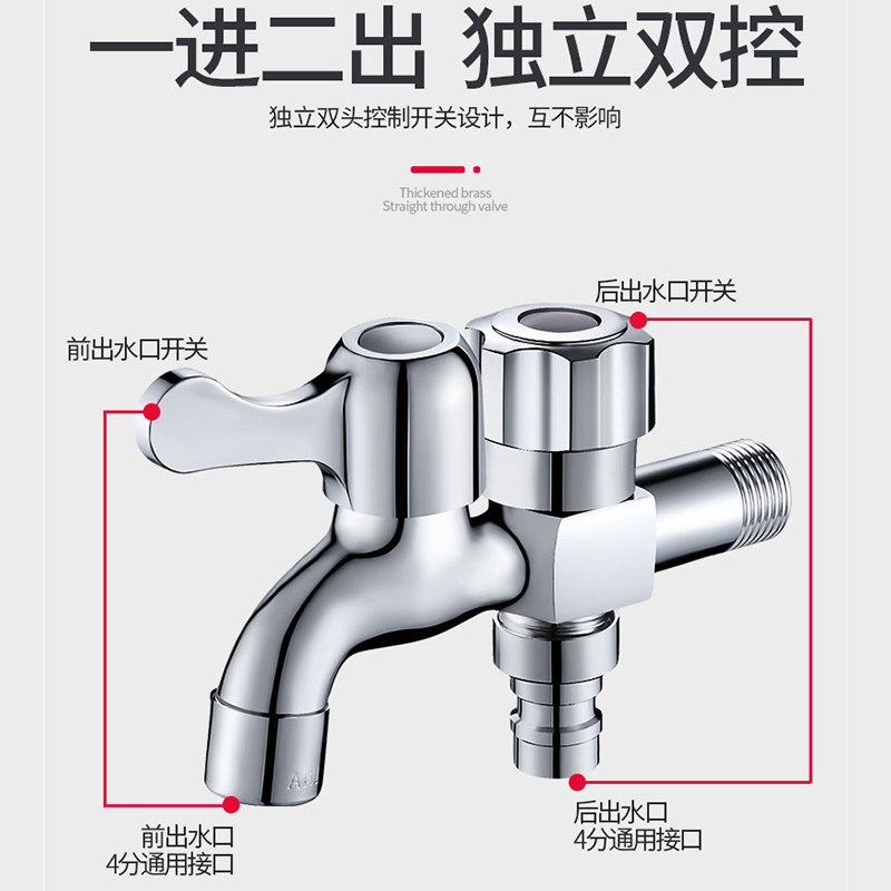 📚 洗衣机水龙头一进二出三通多功能家用4分双用两头出一分二水龙头