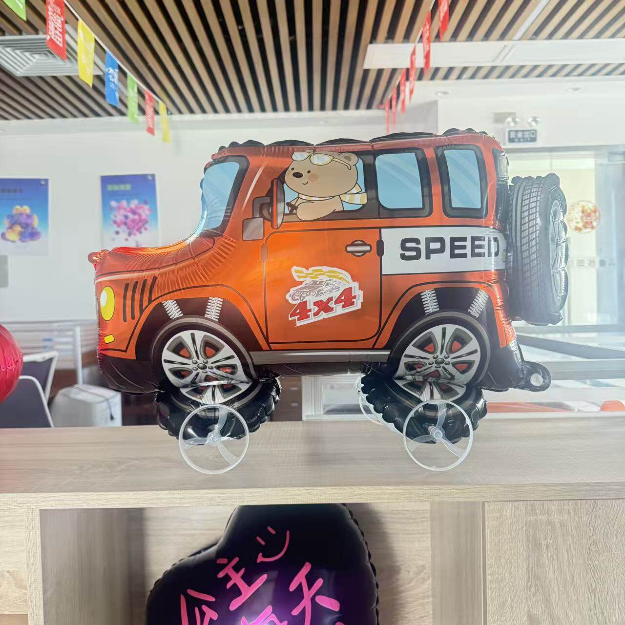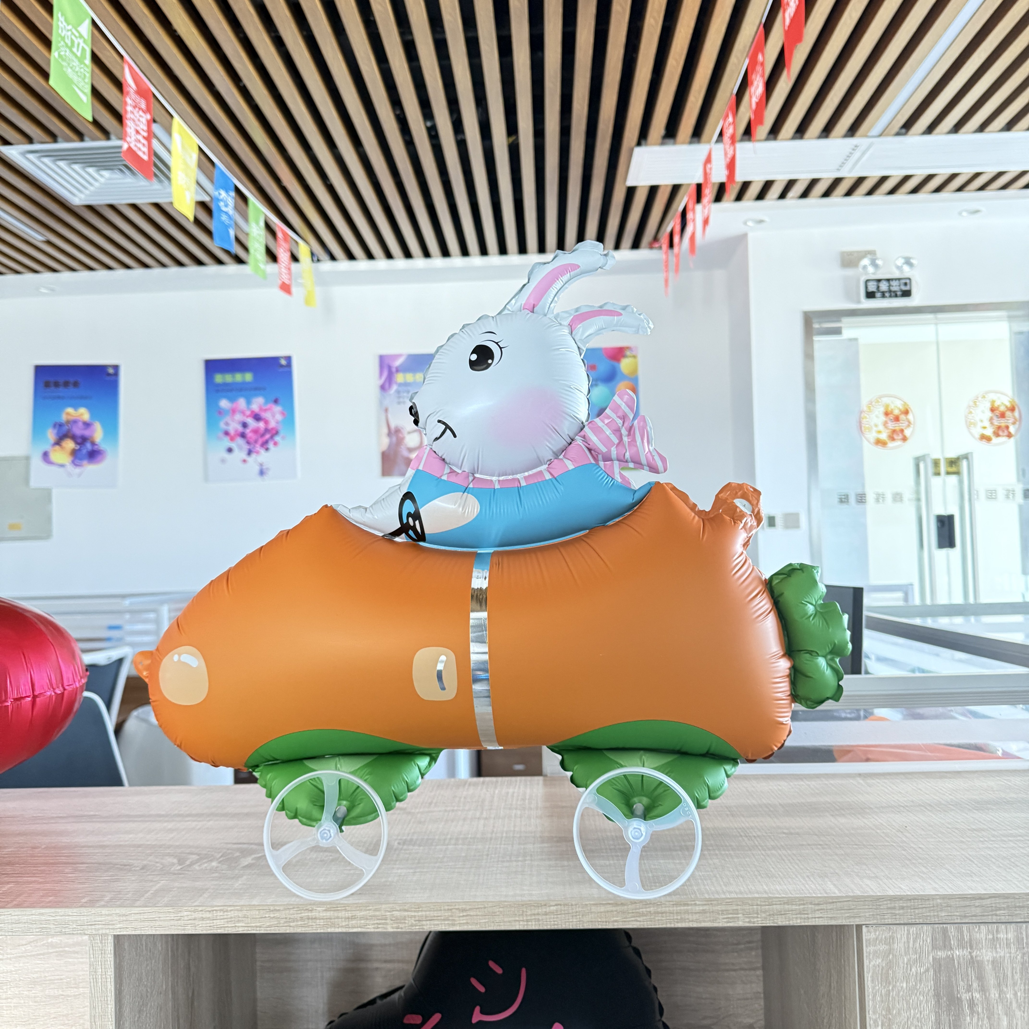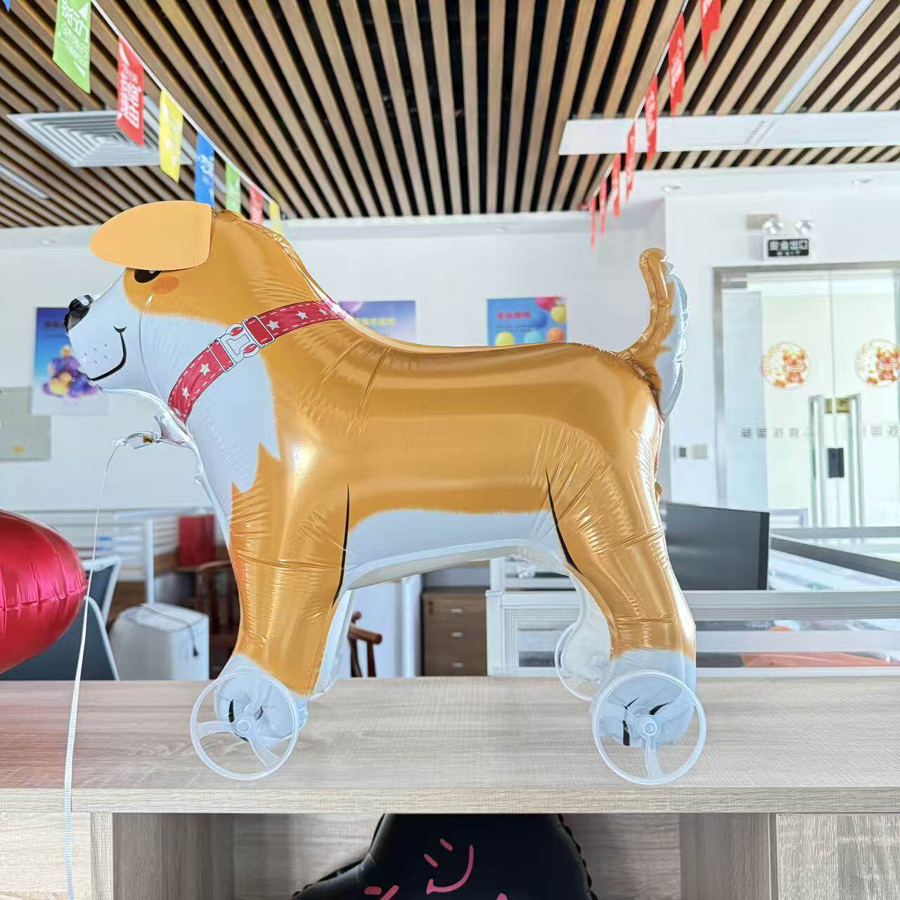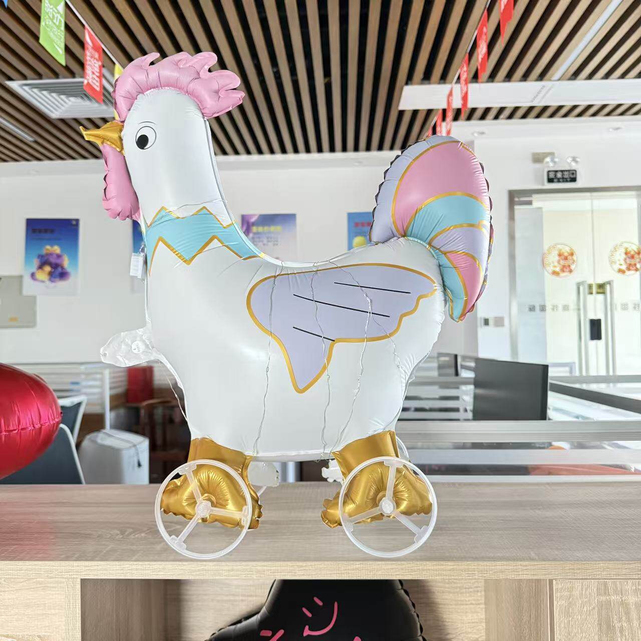 📚 新款滑轮散步溜达卡通兔子汽车造型气球走路公鸡小狗铝膜气球玩具