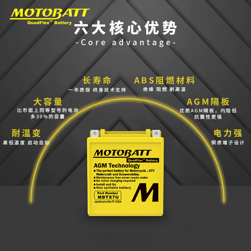 📚 MOTOBATT本田佳御NS125LA雅马哈MT-03隆鑫无极摩托车电瓶蓄电池