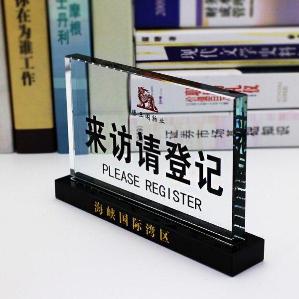 📚 来访请登记牌 宾馆前台接待牌 问询接待访客指示牌提示桌台牌定制