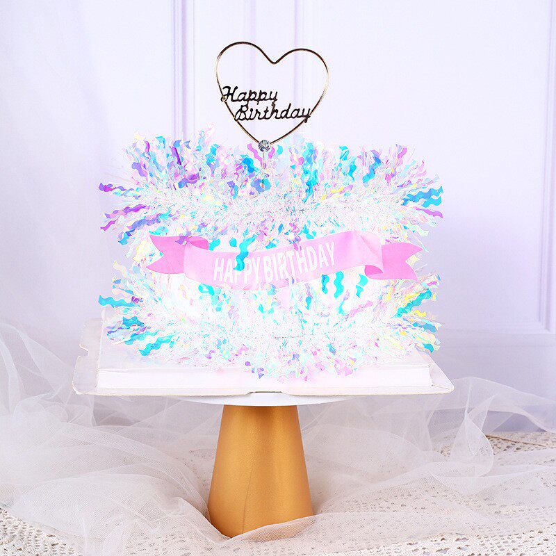 📚 50支装炫彩雨丝蛋糕装饰插件亮片镭射花束彩丝条韩式生日烘焙插牌