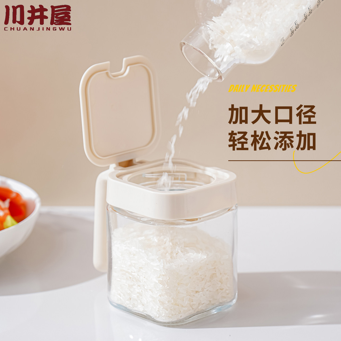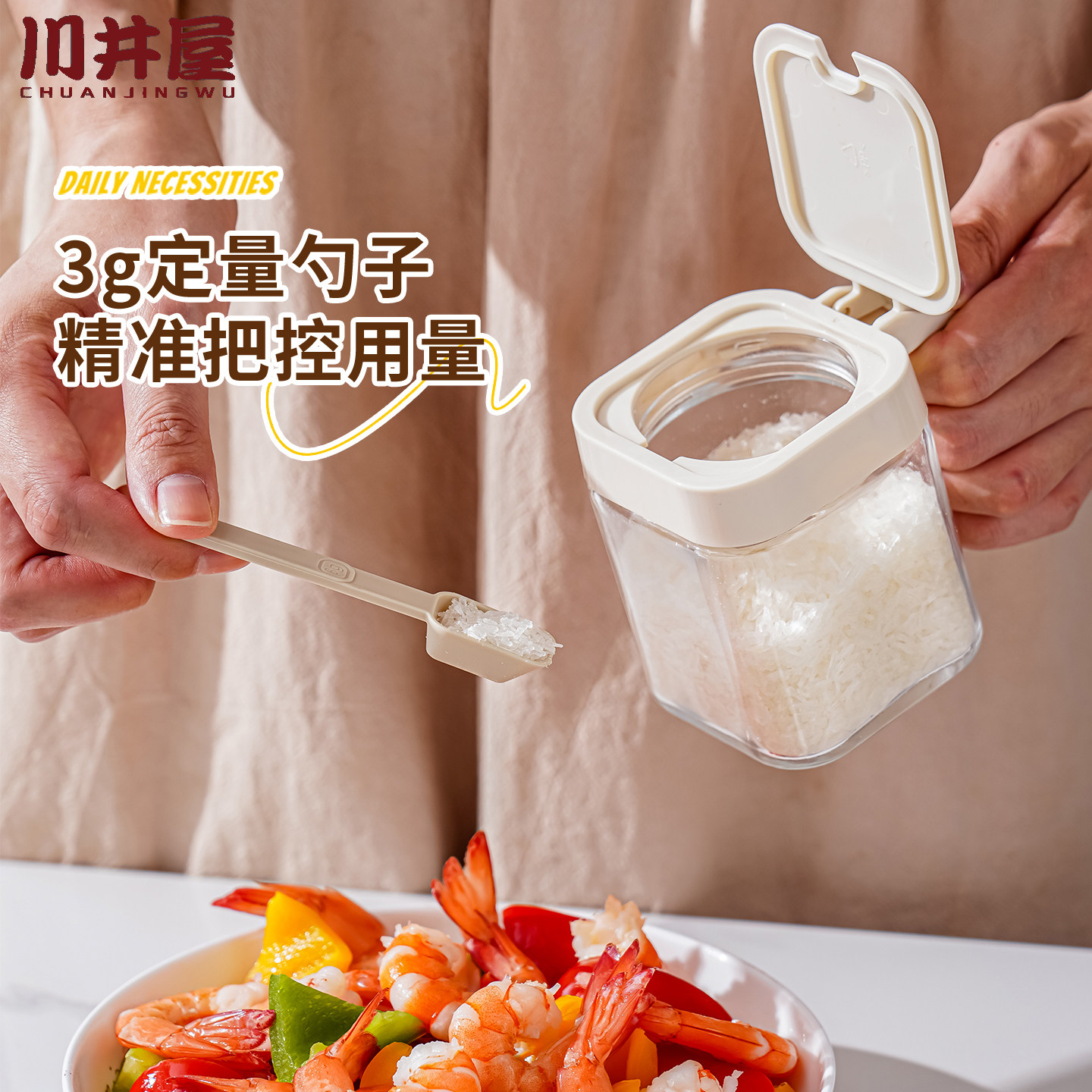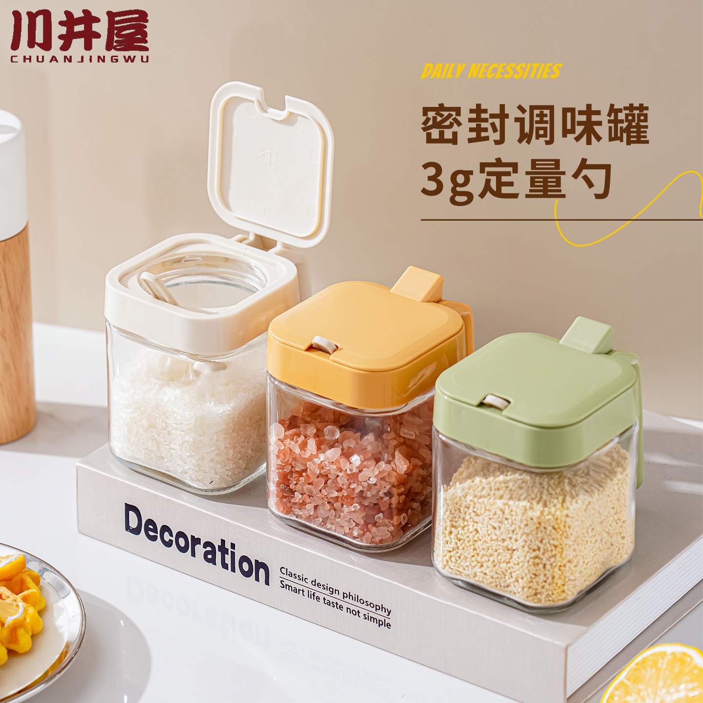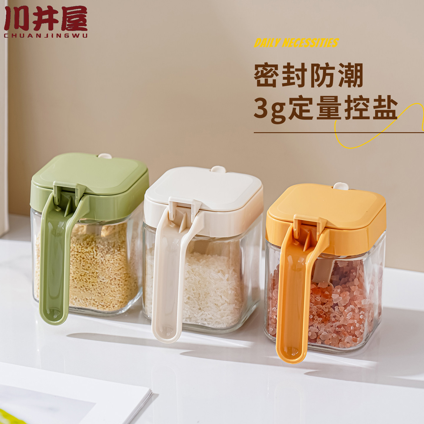 📚 调料盒家用盐糖味精佐料分装调味瓶分装玻璃罐防潮带勺密封料罐