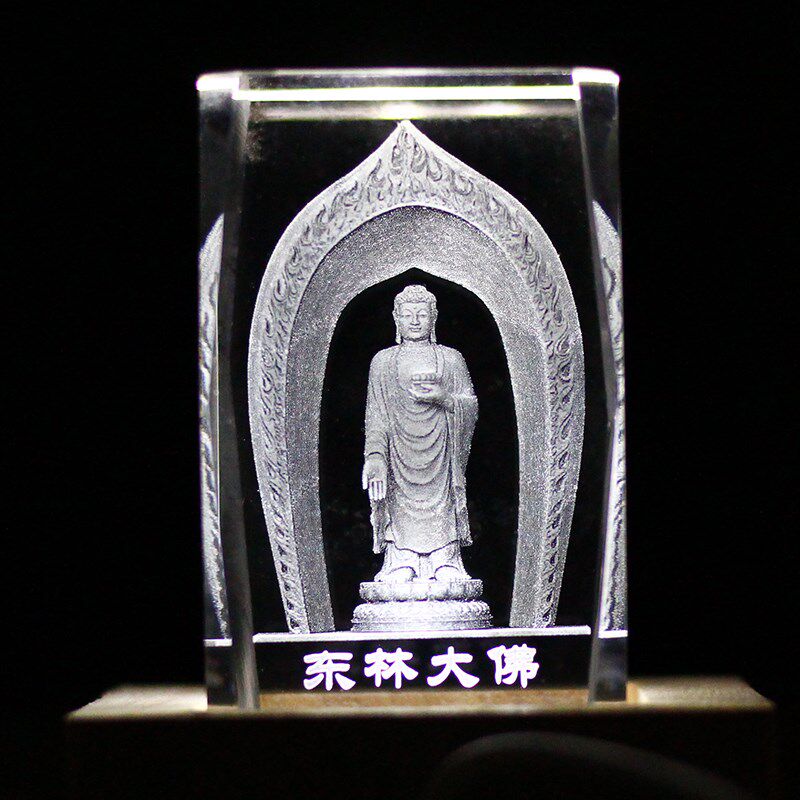 📚 水晶内雕工艺品饰品礼品摆件东林大佛桌面雕刻发光USB接口七彩色