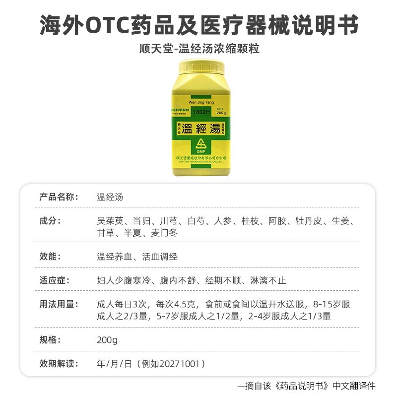 📚 【自营】顺天堂温经汤浓缩颗粒温经养血调经经期不顺淋漓不止200g