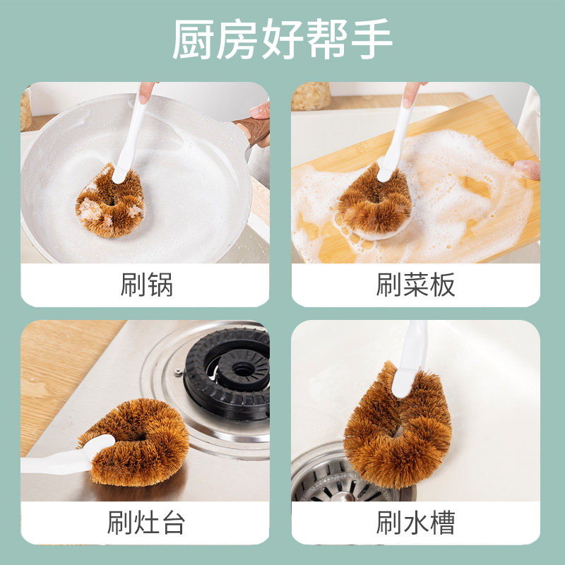 📚 云蕾塑柄白棕锅刷 洗锅刷子长柄清洁刷厨房去污用刷不脏手
