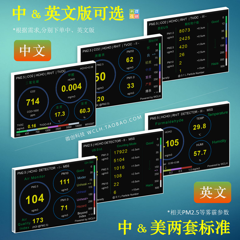 📚 M5S家用激光PM2.5检测仪甲醛CO2新房新装修新风地暖空气质量检测