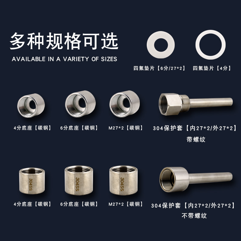 📚 304不锈钢压力表双金属温度计焊接底座接头4分6分M27X2/M20*1.5