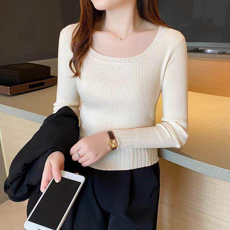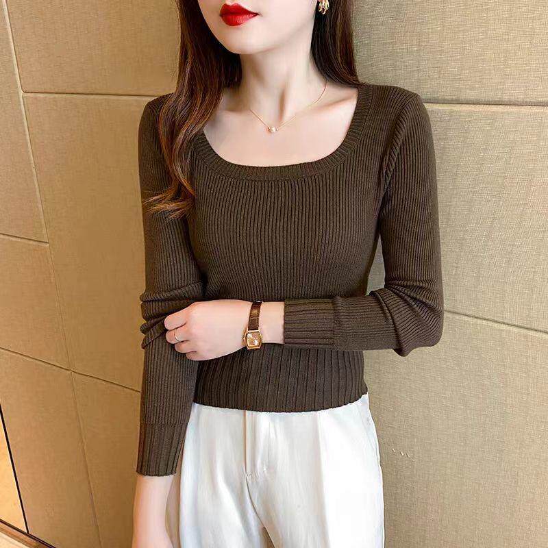 📚 2024年春季新款方领打底衫女春秋洋气内搭长袖针织衫上衣短款毛衣