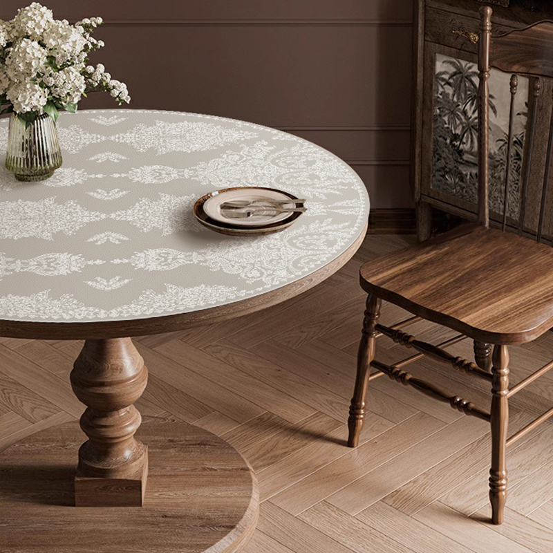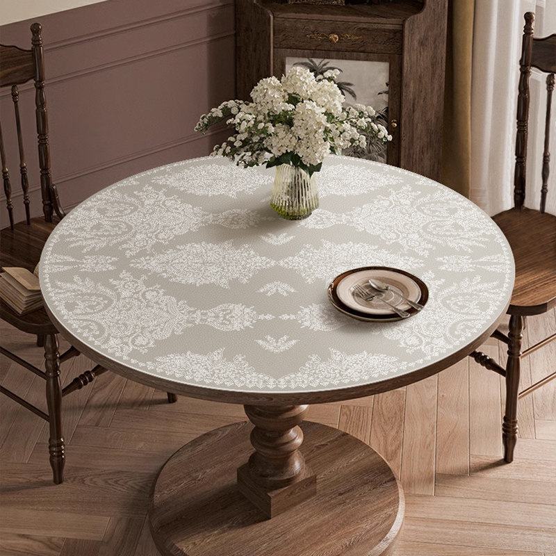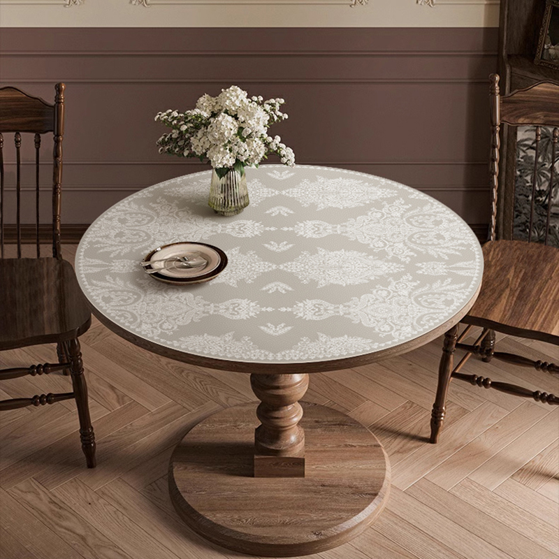 📚 法式蕾丝风克莉丝皮革圆桌垫轻奢高级感防水防油圆形台布桌面垫子