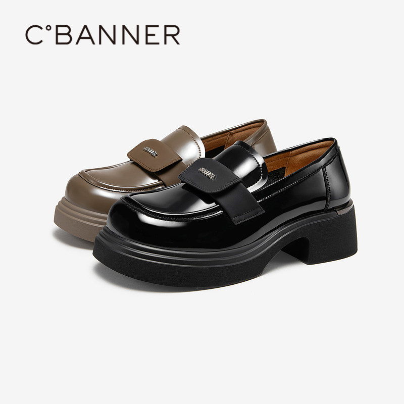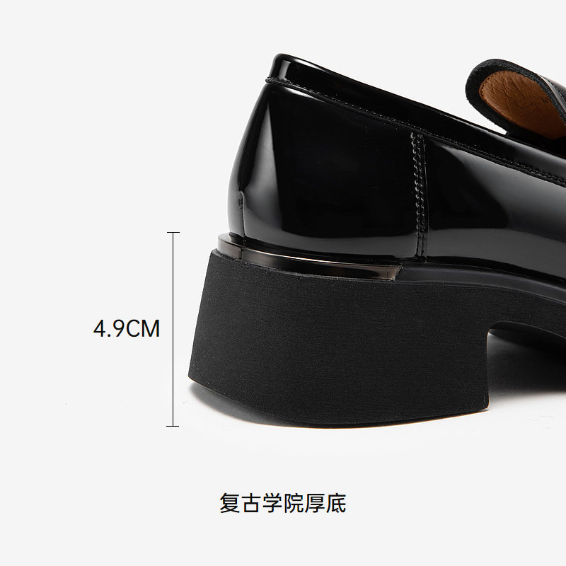 📚 千百度漆皮厚底乐福鞋女款秋季新款深口经典复古学院风小皮鞋