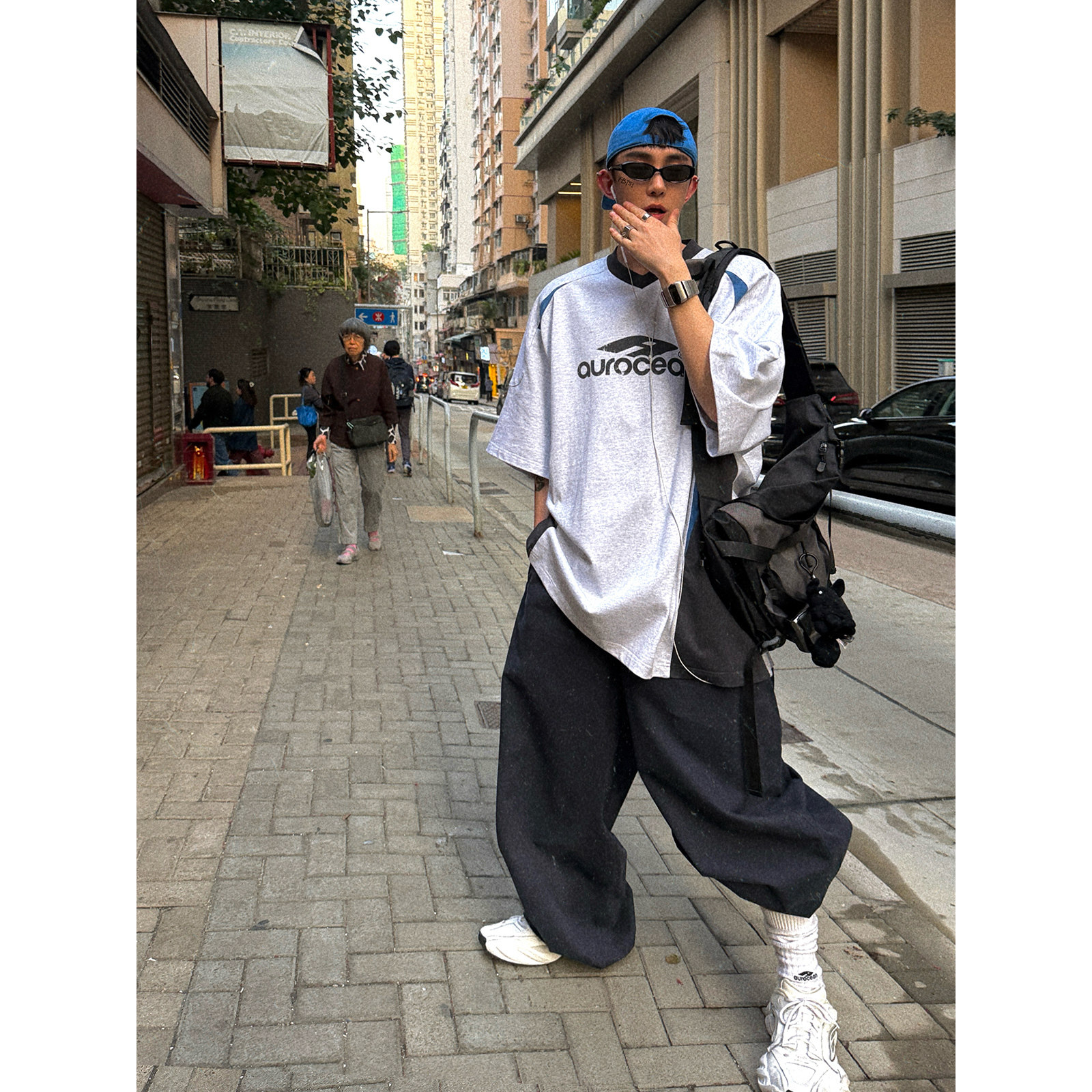 📚 Aurocean 古着运动少年感T恤 撞色拼接宽松大版短袖t