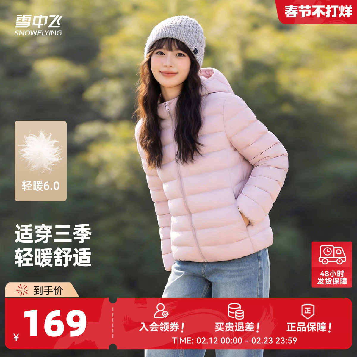 📚 雪中飞2026春新款女式连帽春秋排骨轻薄羽绒服短款时尚轻暖休闲