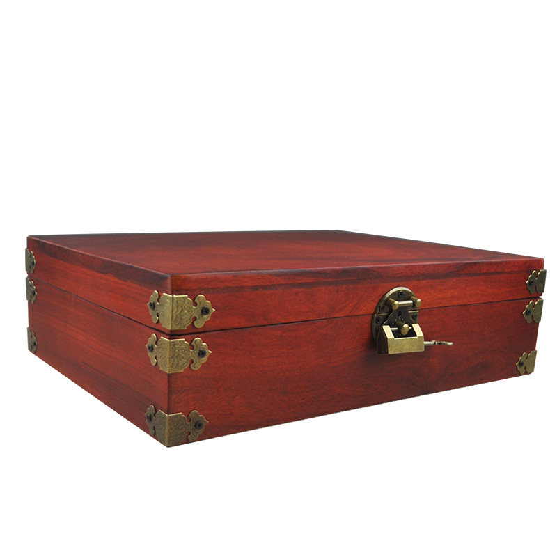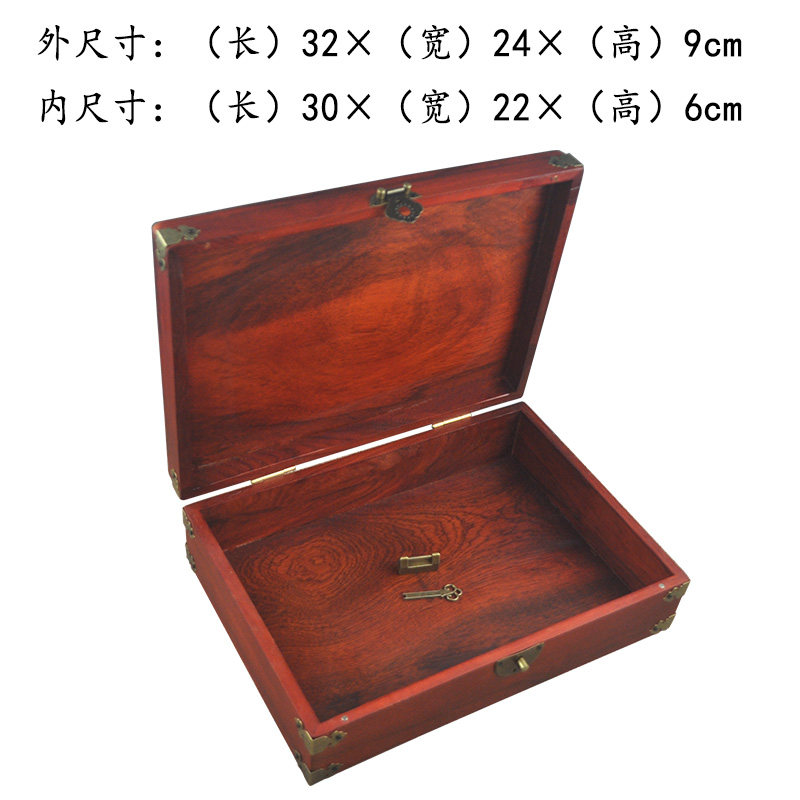 📚 红木特大号收纳盒花梨木实木首饰盒中式带锁珠宝盒桌面文件整理盒