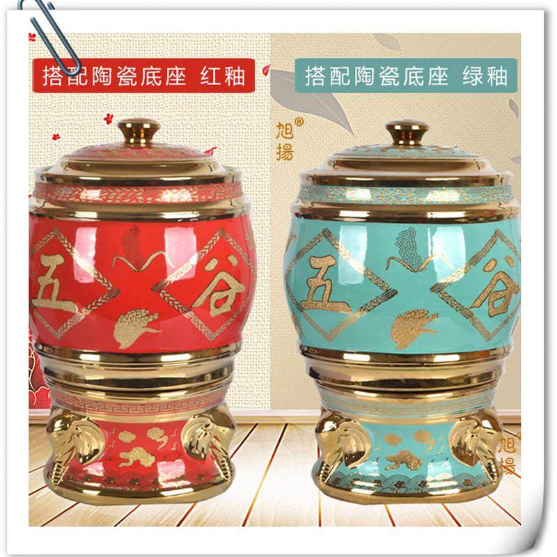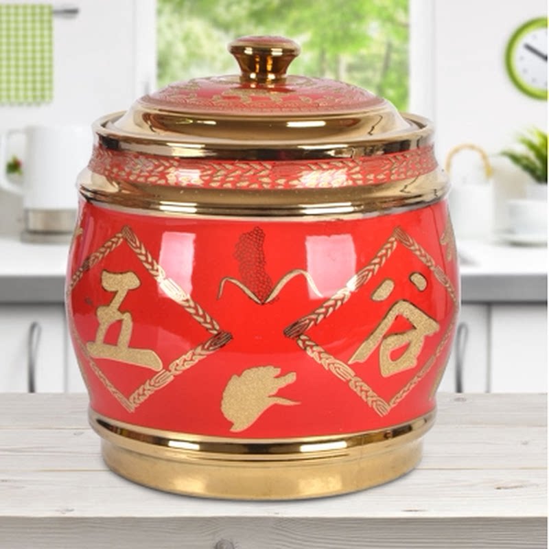 📚 陶瓷米缸米桶带盖20斤30斤存粮密封防潮防虫蛀用10公斤五谷丰登