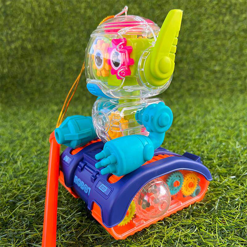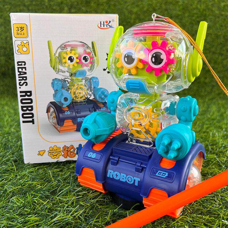 📚 儿童手提中秋节电动万向透明齿轮转动机器人坦克炫酷闪光音乐灯笼
