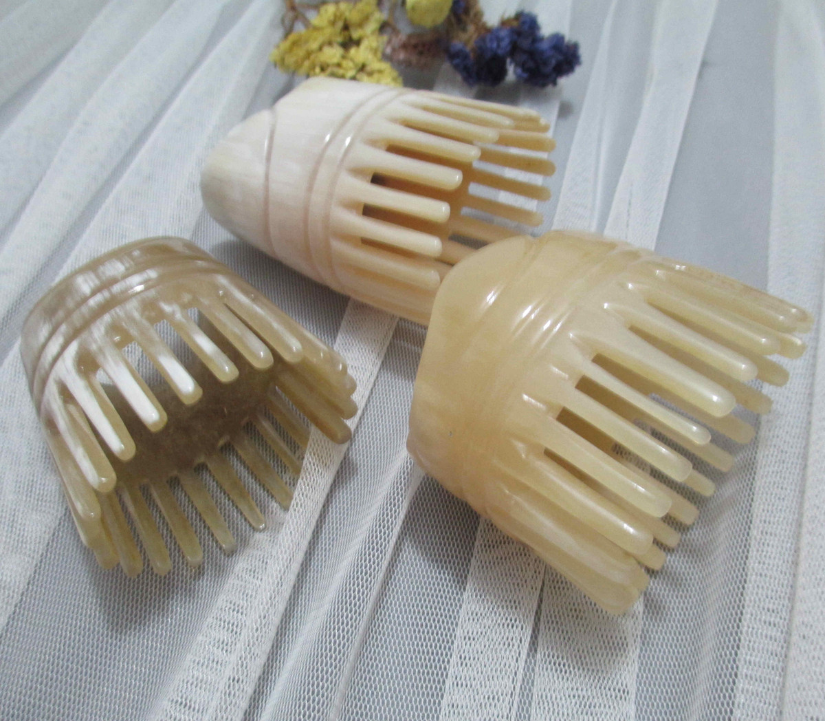 📚 天然圆筒牛角梳子正品洗头梳女头部经络按摩梳头皮头疗防脱发刻字