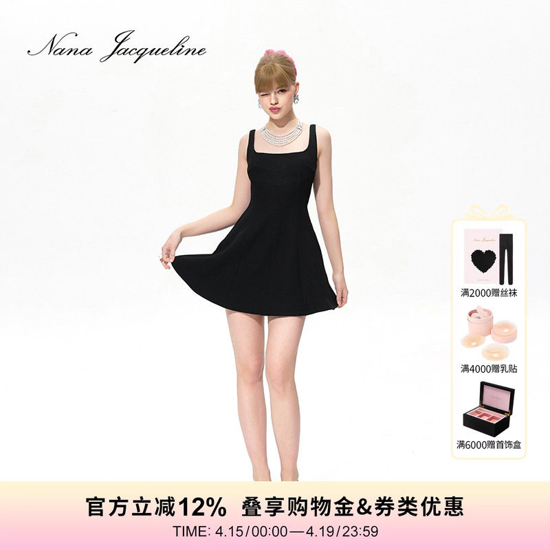 📚 【刘亦菲同款】NanaJacqueline方圆领吊带连衣裙减龄伞裙女不易皱