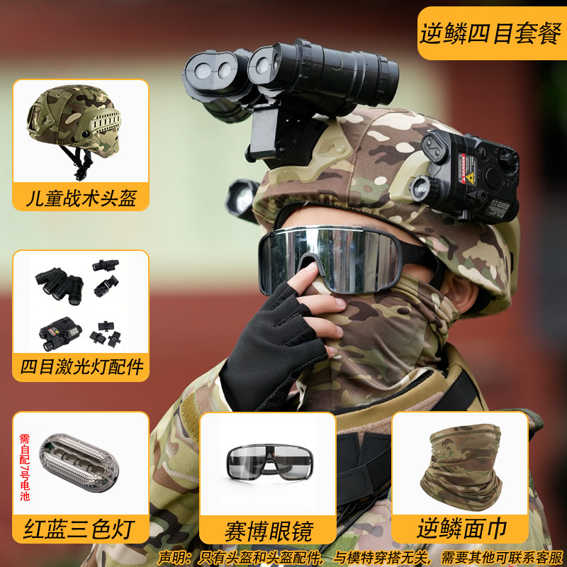 📚 儿童四目战术头盔特种兵行动版作战小孩CS米奇军迷导轨夜视仪模型