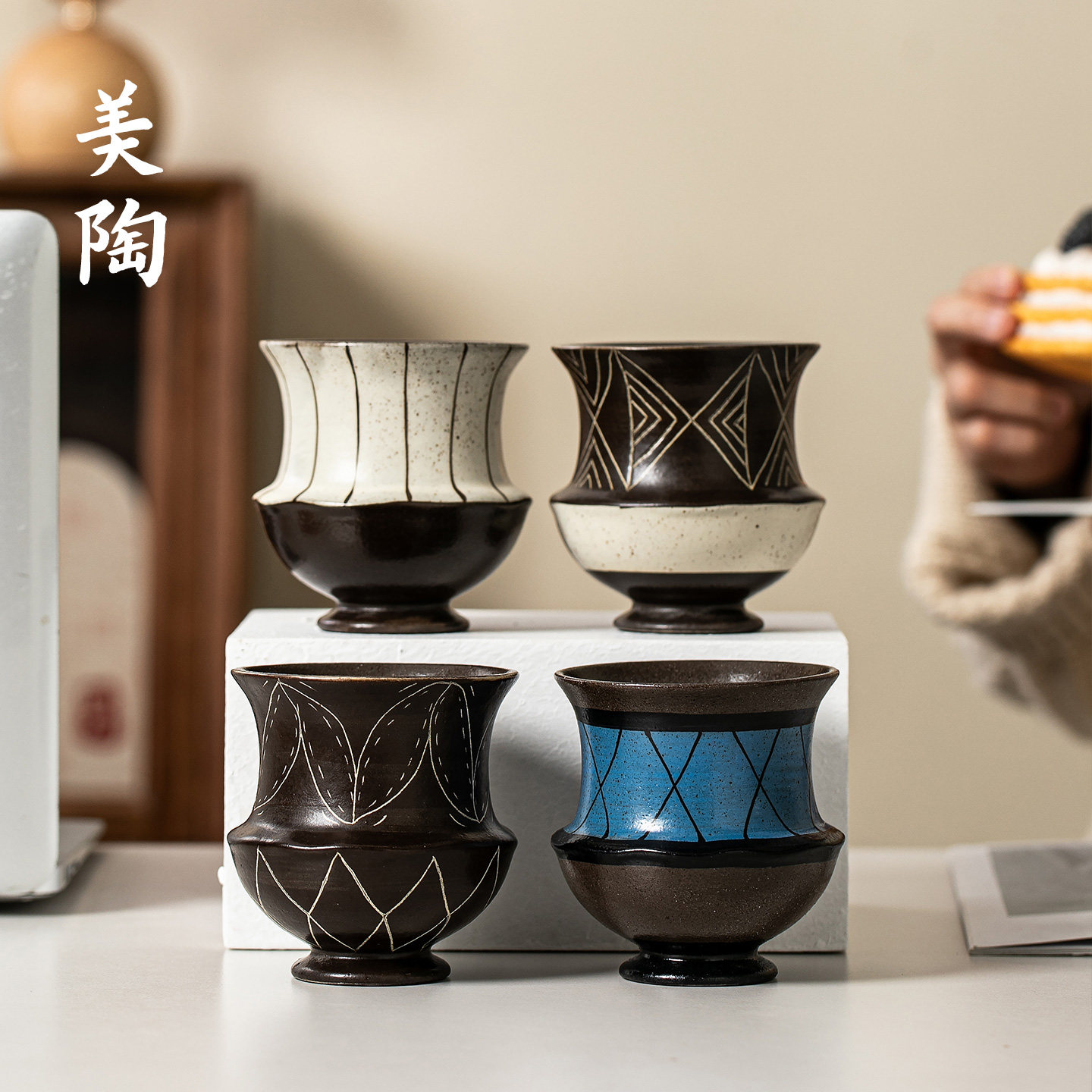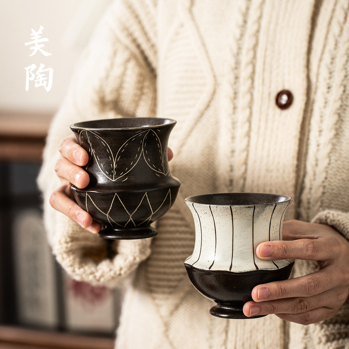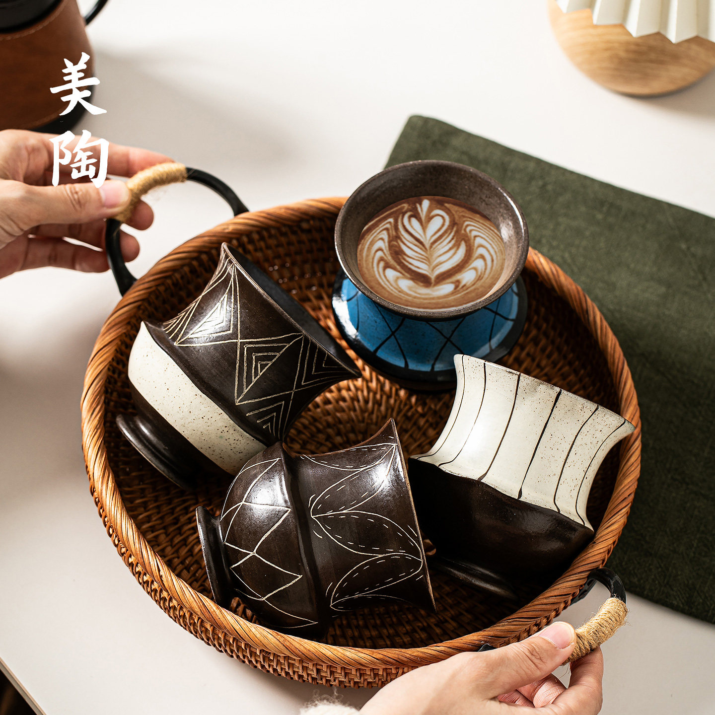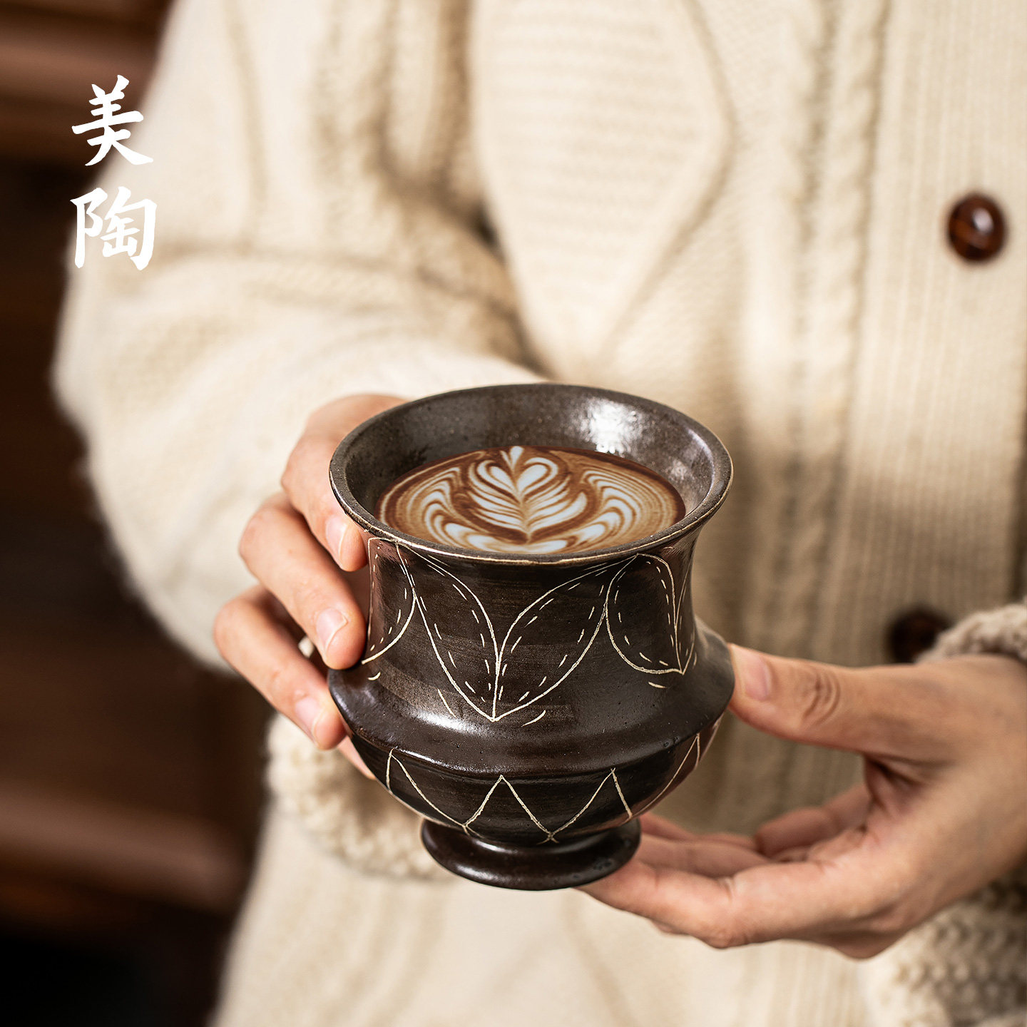 📚 景德镇手作陶瓷杯雕刻哑光咖啡杯拿铁拉花杯女生茶杯高颜值主人杯